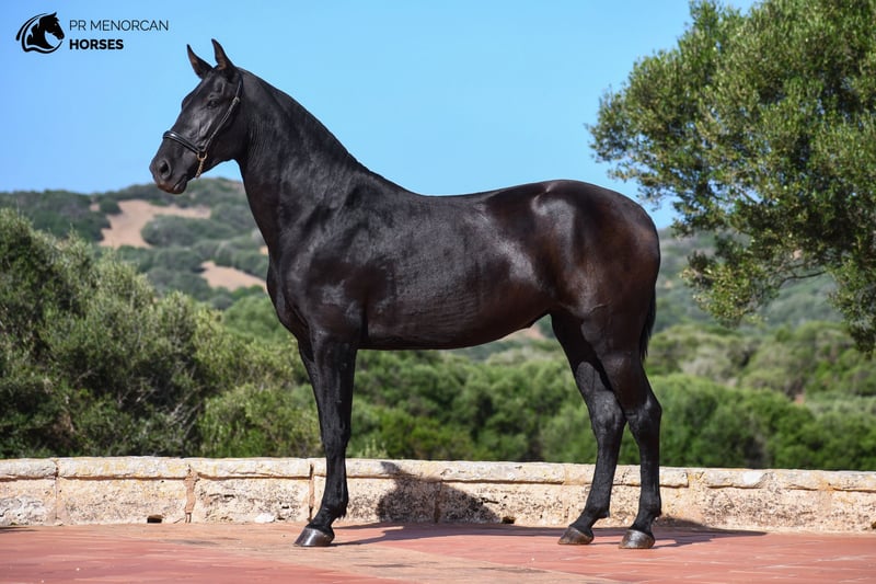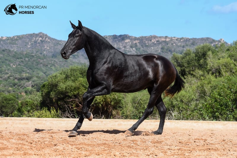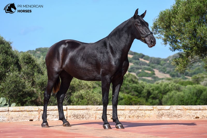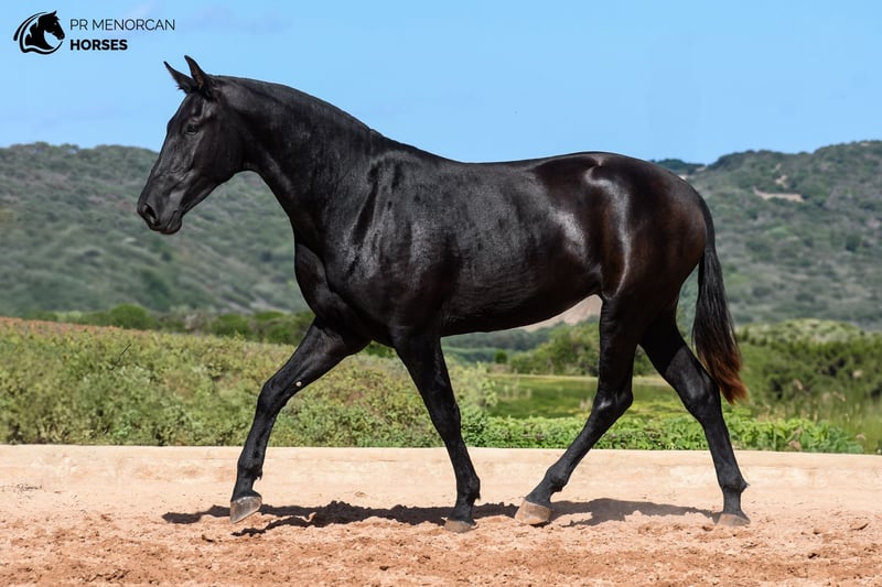 legance, Movement, and Champion Bloodlines! This stunning Pura Raza Menorquina filly, born in March 2022, could be yours! She has a solid black coat and currently stands at 158 cm, expected to grow to about 160 cm. This young filly offers a perfect blend of outstanding movement and unbeatable genetics. Coming from a line of champions, her sire is a young stallion recommended for his dressage performance, while her dam is a recommended mare for her morphology, a multiple breed champion with a sweet and gentle nature. Her paternal grandparents are both breed champions, and on her dam's side, you'll find one of the only three ELITE stallions alongside another champion mare. This remarkable pedigree makes her an ideal choice for breeding, but her elegant movement also makes her a top candidate for dressage, working equitation, eventing, or shows. Despite her young age, she has already proven her worth in morphological competitions, winning the prize for best movements in her section on two occasions. She is well-trained, knowing how to lunge, lift all four feet, stand tied, take showers, and travel by truck. Her temperament is calm and friendly, enjoying the company of people and always seeking to connect. She currently lives in a paddock with other young mares, where she enjoys her freedom, running, playing, and growing alongside them while learning social skills and manners. You can visit her in person or handle everything online for your convenience. We take care of all documentation and international transport for a seamless process. Located in Menorca Don’t miss this chance! DM for more info and videos.