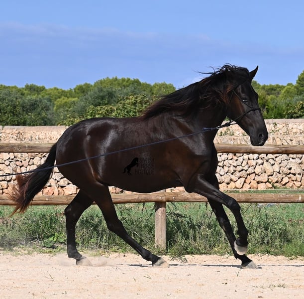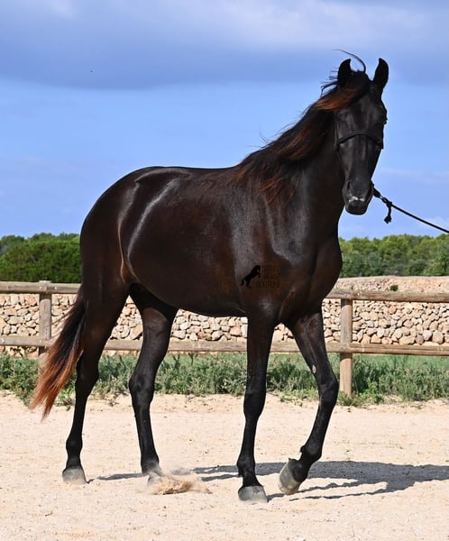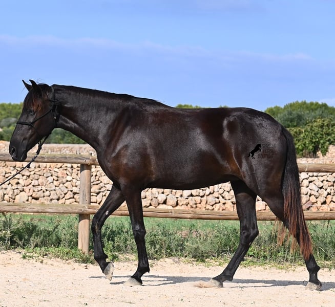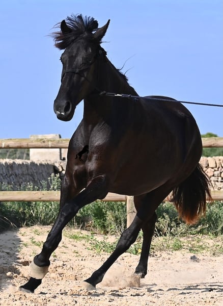 Esta yegua menorquina de pura raza, nacida en 2022, ¡tiene un carácter invaluable! Desde hace unos meses está montada y brilla como caballo de monta tanto que muchos caballos ya entrenados pueden tomarla como ejemplo. No da un paso en falso, es increíblemente atenta para ser una joven y tan tranquila que no se altera. Va descalza al campo, tanto sola como en grupo, y allí también es absolutamente tranquila, lo cual no es común a su edad. Su equilibrio es realmente notable para un caballo joven y todo parece fácil para ella. Ya sea mantener el contacto o estirarse bien y marchar con la rienda larga. Perros de todos los tamaños y la actividad en la finca con tractores y demás, son parte de su rutina diaria, y por lo tanto, también es muy tranquila en esas situaciones. Su ascendencia combina un campeón de raza por parte paterna y líneas muy antiguas del Menorquín por parte materna, lo que la convierte en una todoterreno. Su exterior barroco y corto también la hace interesante para la Working Equitation. Con su carácter, es realmente un buen caballo familiar, ya que es encantadora en el trato y también ideal bajo la silla para aprender juntos o salir a pasear tranquilamente. Vive en manada y gracias al clima duro y los suelos rocosos, tiene cascos duros y piernas claras. También conoce el establo y está lista para viajar a su nuevo hogar en cualquier momento :) El "lápiz labial de arena" no es permanente, solo se ha decorado la boca para las fotos ;) Actualmente mide alrededor de 161 cm y su altura final será unos centímetros más. El "lápiz labial de arena" no es permanente, solo se ha decorado la boca para las fotos ;) Videos y ascendencia disponibles a solicitud. Su ubicación es Menorca. Con gusto organizaré una revisión veterinaria de potros, transporte o su viaje, si desea venir a verla en persona. Detalles disponibles en mi página o en conversación. Saludos desde España.