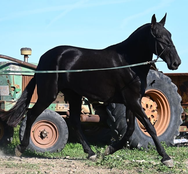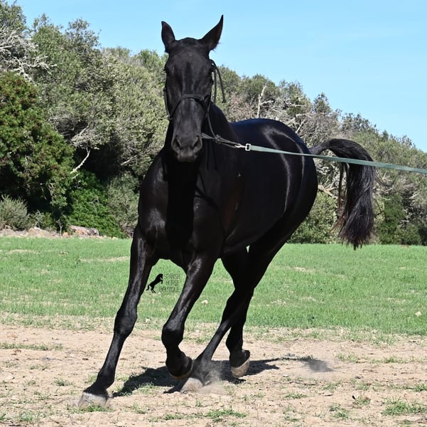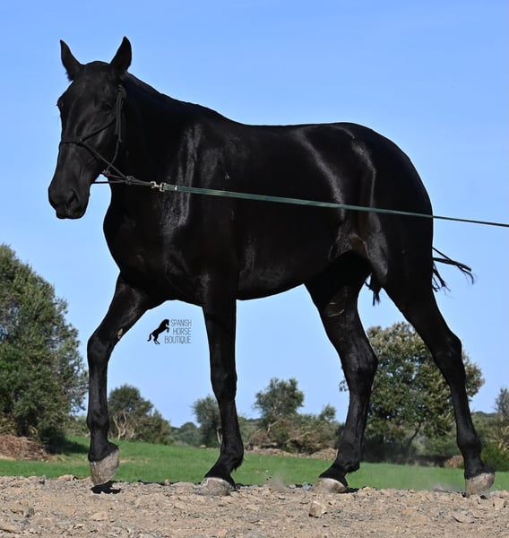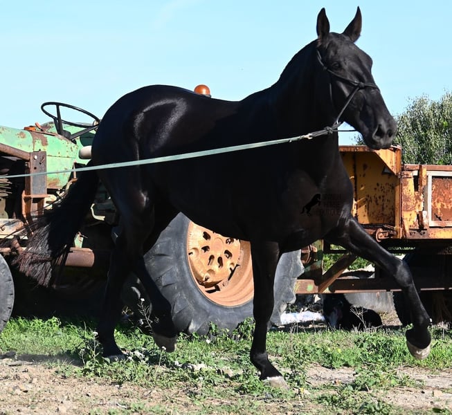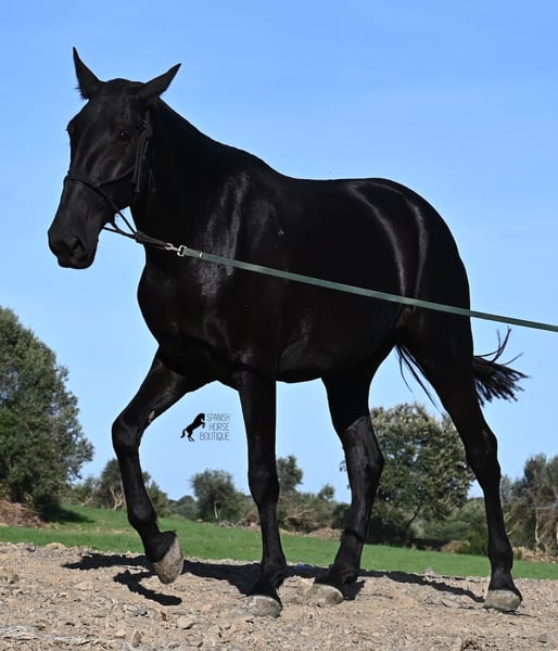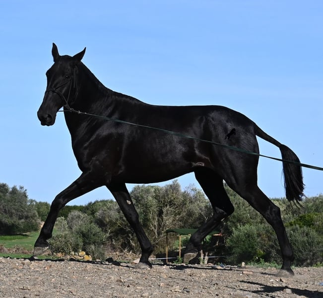 This 2019-born purebred Menorquina mare captures the hearts of breed enthusiasts for many reasons! She is a RECOMENDADO mare, meaning she is not only licensed but also classified as a breed improver—a distinction achieved by only a few mares. Her dam is a breed champion, and her sire was honored as the best stallion of the breed (top sire). This prestigious lineage is immediately noticeable in her conformation, especially in her striking head, which is a hallmark of her famous father. What is also rare is her size, as she measures an impressive 16.1 hands, a height reached by very few mares of this breed. She moves gracefully and light-footed, not heavy or sluggish, which is remarkable for such a large-breed horse. She has been kept 24/7 in robust conditions on very rocky terrain and in a harsh climate, making her highly resilient. Lunging has been somewhat challenging for her, especially given the rustic farm environment, but she is likely to become a good riding horse if trained to be ridden. She has foaled a colt, proving her qualities as a mother very successfully. There is an option for a pre-purchase exam on site. She is loading well and behaves well around people, but as a pure breeding mare, she has not yet been ridden. An absolutely top-quality mare in many respects, offered at a sensational price for her caliber! Videos and pedigree details are available upon request. Her location is Menorca. I am happy to organize an ultrasound, transport, or her journey if you wish to view her in person. Further details can be found on my page or through a direct conversation. Greetings from Spain