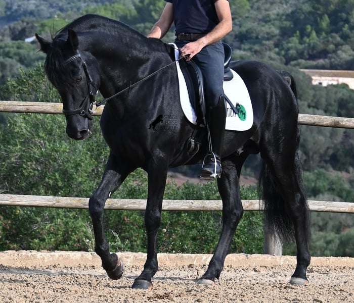 Dieser 2010 geborene, reinrassige Menorquinhengst, ist ein vielseitiger Partner. Durch und durch ein liebevoller, entspannter Gentleman, der alles recht machen will und ganz sorgsam im Umgang mit dem Menschen ist, um ja zu gefallen. Körperlich voll fit im besten Alter, doch man hat den Vorteil, dass er keine Jungspund-Flausen mehr im Kopf hat und man alles mit ihm einfach genießen kann. Sei es im Umgang, wo er keine Hengstmanieren hat und artig ist. Unterm Sattel ist er bei der Arbeit voll dabei und danach kann man ganz gemütlich die Trainingseinheit im Schritt am losen Zügel ausklingen lassen. Da er Fiesta-Erfahrung hat, ist er quasi bombenfest und es gibt nichts, was ihn aus der Ruhe bringt, egal wo der Ausritt hinführt. Obwohl er schon gedeckt hat und Nachzucht hat, ist er selbst im Beisein von Stuten ein absoluter Gentleman. Wer keinen Hengst halten kann, für den kann gerne die Kastration organisiert werden. Er wird einhändig in der örtlichen Doma Menorquina Reitweise geritten, kennt aber auch die englische Reitweise mit zwei Händen auf Wassertrense. Zu seinem Repertoire gehört durch die Fiestaerfarhung auch der örtliche Bot, das Steigen und Laufen auf der Hinterhand. Doch wer das nicht möchte, kann auch da absolut unbesorgt sein. Er ist so gut ausgebildet und erzogen, dass man keine "falschen Knöpfe drücken" kann und er das ungewollt tut. Für jene, die den Bot gerne lernen wollen, erkläre ich gerne wie ;) Ins Gelände geht er gerne, sowohl alleine, als auch mit anderen Pferden (auch Stuten!) und wer Spass an Lektionen hat, der kann mit ihm den spanischen Schritt machen. Ein idealer, feiner, barocker Pferdefreund, mit dem man noch viele schöne Jahre zusammen genießen kann. Sein Stockmaß ist 155cm, das macht ihn schön kompakt. Preis der Qualität entsprechend. Mehrwertsteuer ausweisbar. Aktuell steht er auf Menorca! Videos und Abstammung gerne auf Anfrage. Gerne organisiere ich vor Ort eine AKU, Kastration, Beritt, Transport oder auch ihre Reise, sollten Sie persönlich zum Anschauen kommen. Details dazu gerne auf meiner Seite oder im Gespräch. Saludos aus Spanien
