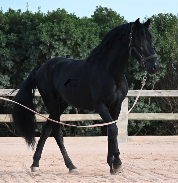 Este semental Menorquín de pura raza, nacido en 2010, es un compañero versátil. Es un caballero cariñoso y relajado, que siempre quiere complacer y es muy cuidadoso en su trato con los humanos. Físicamente está en plena forma y en la mejor edad, pero tiene la ventaja de no tener las travesuras de un joven, lo que permite disfrutar de todo con él. En el manejo no muestra comportamientos de semental y se comporta de manera ejemplar. Bajo la silla, está completamente concentrado en el trabajo y después se puede disfrutar de una sesión de entrenamiento en paso con riendas sueltas. Gracias a su experiencia en fiestas, es prácticamente inquebrantable y no hay nada que lo perturbe, sin importar a dónde lo lleve la salida. Aunque ya ha cubierto y tiene descendencia, sigue siendo un verdadero caballero incluso en presencia de yeguas. Para aquellos que no pueden tener un semental, se puede organizar la castración sin problema. Se monta con una mano en la técnica de Doma Menorquina local, pero también conoce el estilo de monta inglesa con dos manos en bocado de agua. Su repertorio incluye, gracias a su experiencia en fiestas, el bot, así como levantarse y andar sobre las patas traseras. Sin embargo, quienes no deseen esto pueden estar completamente tranquilos, ya que está tan bien educado que no se pueden "presionar botones equivocados" y no lo hará involuntariamente. Para aquellos que deseen aprender el bot, estaré encantado de explicarles cómo hacerlo ;) Le gusta salir al campo, tanto solo como acompañado de otros caballos (¡también yeguas!) y quienes disfruten de lecciones pueden hacer con él el paso español. Es un amigo ideal, fino y barroco, con quien se pueden disfrutar muchos años hermosos juntos. Su alzada es de 155 cm, lo que lo hace muy compacto. El precio es acorde a la calidad. IVA deducible. Actualmente se encuentra en Menorca. Videos y pedigree disponibles a solicitud. Con gusto organizo una revisión veterinaria, castración, entrenamiento, transporte o incluso su viaje, si desea venir a verlo personalmente. Más detalles en mi página o en conversación. ¡Saludos desde España!
