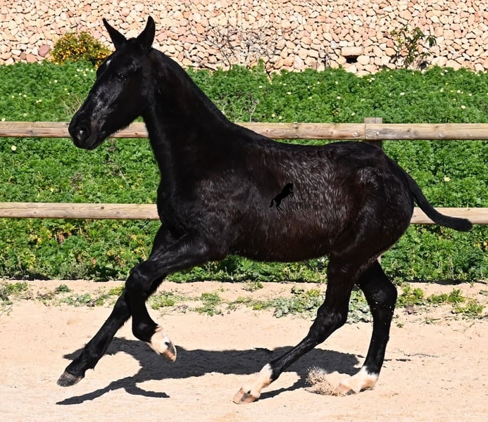 Dieser im Frühjahr 2025 geborene, reinrassige Menorquinhengst, hat eine ganz spezielle Optik. Mit drei weißen Söckchen und einem kleinen Stern, sticht er sofort aus der Herde heraus und seine Zeichnung ist heutzutage eine Seltenheit. Er entstammt sehr alter Urlinien des Menorquin, die sich immer mehr verlieren und es ist schön, dass manche Züchter diese versuchen zu erhalten. Allerdings waren früher noch mehr Exemplare mit weißen Abzeichen in der Rasse vertreten und die sind sichtlich bei ihm durchgekommen ;) So wird er anhand der heutigen Körungsauflagen mit so viel Weiß später nicht als Deckhengst zugelassen, jedoch ein wundervolles Reit- oder Fahrpferd! Er hat schöne Bewegungen und ist sehr flexibel und flink, was ihn bestimmt später auch für die Working Equitation interessant machen wird. Wie es sich für einen Youngster gehört, besteht sein Tagesablauf aus Spielen in der Herde, wachsen und gedeihen ;) Auf vielen Hektar Land, steht er 24/7 bei jedem Wetter draussen und ist daher ein robuster Kerl mit klaren Beinen, klarem Kopf und widerstandsfähigem Körper. Er ist sehr neugierig und hat beim Absetzen die Box kennengelernt und ein solides FohlenABC, das auch jederzeit abrufbar ist. Sein zu erwartendes Endmaß, liegt um die 160cm. Für all jene, die ihn erst später holen möchten, besteht die Möglichkeit auf einen Aufzuchtsplatz vor Ort. Videos und Abstammung gerne auf Anfrage. Sein Standort ist Menorca. Gerne organisiere ich vor Ort eine Fohlen-AKU,Transport oder auch ihre Reise, solltest du persönlich zum Anschauen kommen. Details dazu gerne auf meiner Seite oder im Gespräch. Saludos aus Spanien