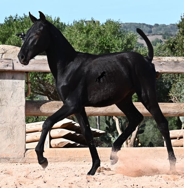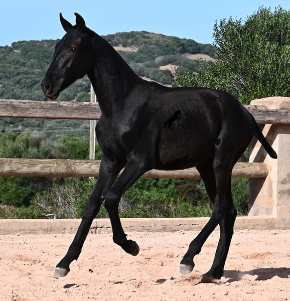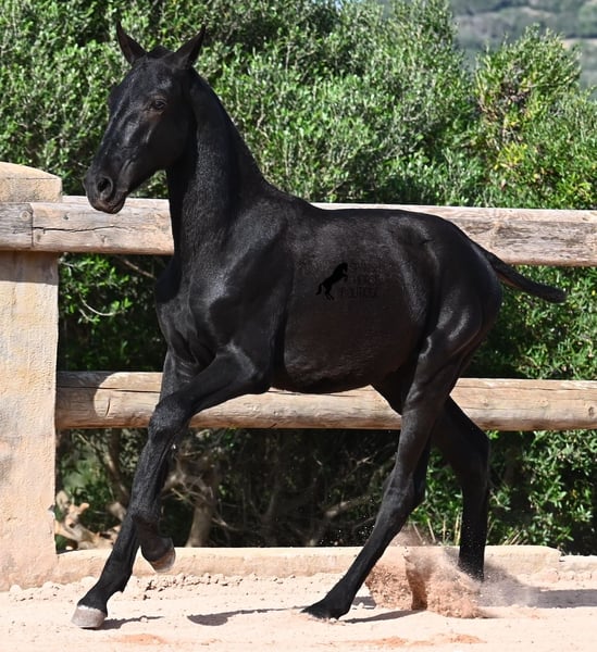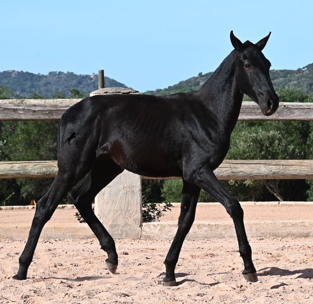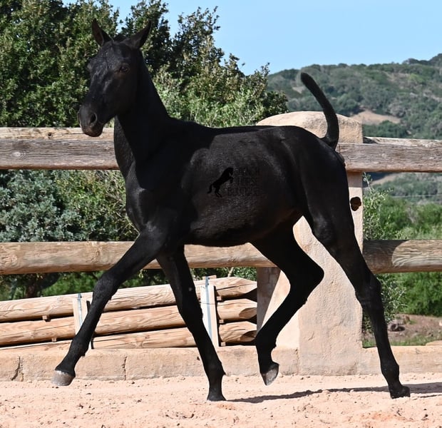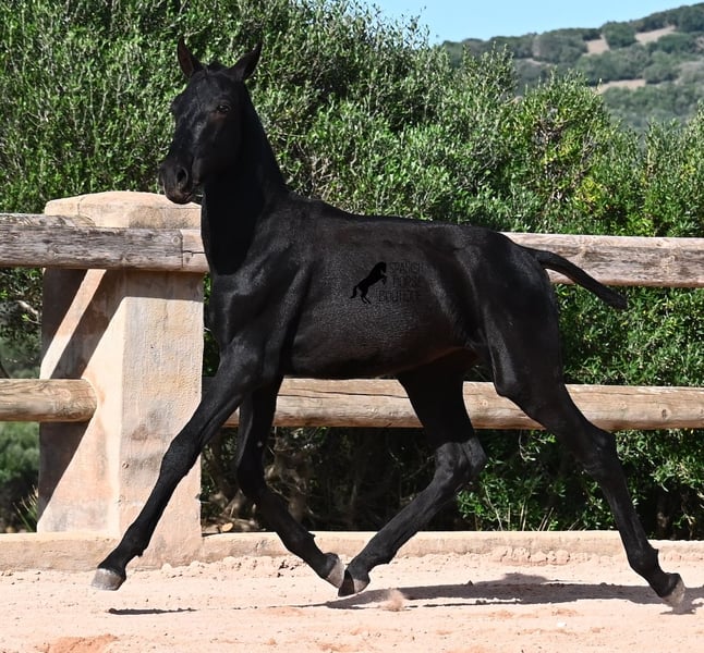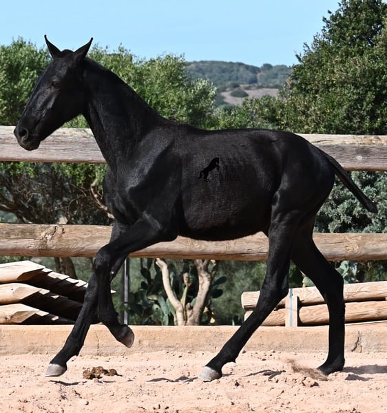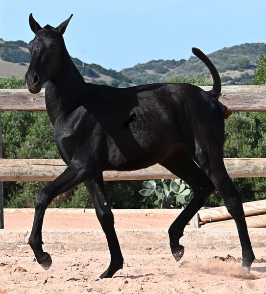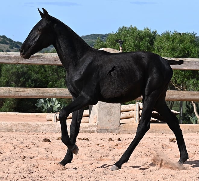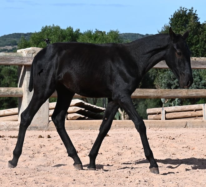 This 02/2025 foal, a purebred Menorquín stallion, is truly a treasure. An exceptionally friendly, calm, and remarkably well-built representative of his breed for his tender age. As is typical for his breed, he shows no fear, which made the free-range photos somewhat challenging, but he did demonstrate how elastic and flexible he already is—something not to be taken for granted in foals. On his paternal side, he descends from original lines known for their endurance. His maternal lineage includes a grandson of one of only three elite stallions of the breed, recognized for outstanding achievements in dressage and local Doma Menorquina. This genetic background makes him potentially suitable for many disciplines later on—whether as a dressage horse, working equitation, eventing, or even as a driving horse. He spends his daily life in a horse kindergarten, kept in absolutely robust conditions on rocky terrain and in a harsh climate. Besides playing with his horse friends, he regularly participates in basic foal training and receives very loving care. Videos and pedigree details are available upon request. He is located in Menorca. I am happy to arrange a foal health check, transportation, or even your journey if you wish to come and see him in person. Please contact me for more details, either on my website or in conversation. Greetings from Spain