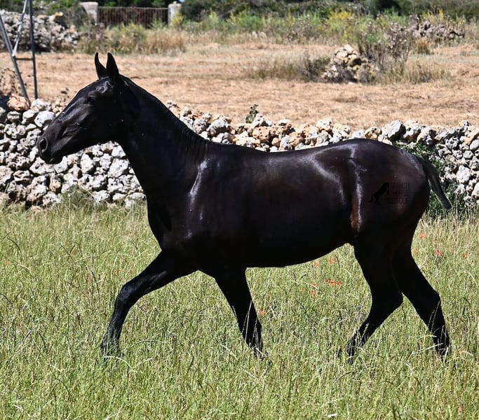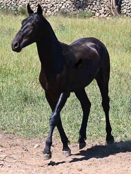 Ce pur-sang Menorquin, né au printemps 2024, est un représentant de la race très affectueux. Son regard doux et son air câlin en témoignent déjà :) Son père a produit plusieurs champions de race, il a donc une lignée exquise et nous trouvons également un champion de race du côté maternel dans ses ancêtres. Il provient de vieilles lignées de Menorquin, connues pour leurs chevaux endurants et polyvalents. Cela se ressent chez lui, car il a un excellent mouvement, est très souple et agile, possède un bon arrière-train et deviendra encore plus baroque. Dans de grands pâturages, il peut profiter de la vie de jeune cheval avec son ami, ce qui lui permet d'être parfaitement socialisé. Grâce aux nombreuses roches et aux sols durs, il a une excellente qualité de sabot et est déjà sûr de ses pas. En manipulation, il est très bien élevé, il a déjà découvert son box et il est très amical et attaché aux humains. Plus tard, il sera intéressant tant comme cheval de monte que comme cheval de trait, car les Menorquin sont très polyvalents ! Sa taille finale prévue est d'environ 165 cm. Si vous souhaitez le récupérer plus tard, un endroit pour son élevage peut être organisé. Des vidéos et des informations sur sa lignée sont disponibles sur demande. Son emplacement est à Minorque. Je peux également organiser sur place un examen vétérinaire pour les poulains, le transport ou votre voyage, si vous souhaitez venir le voir en personne. Pour plus de détails, n'hésitez pas à consulter ma page ou à en discuter. Salutations d'Espagne.