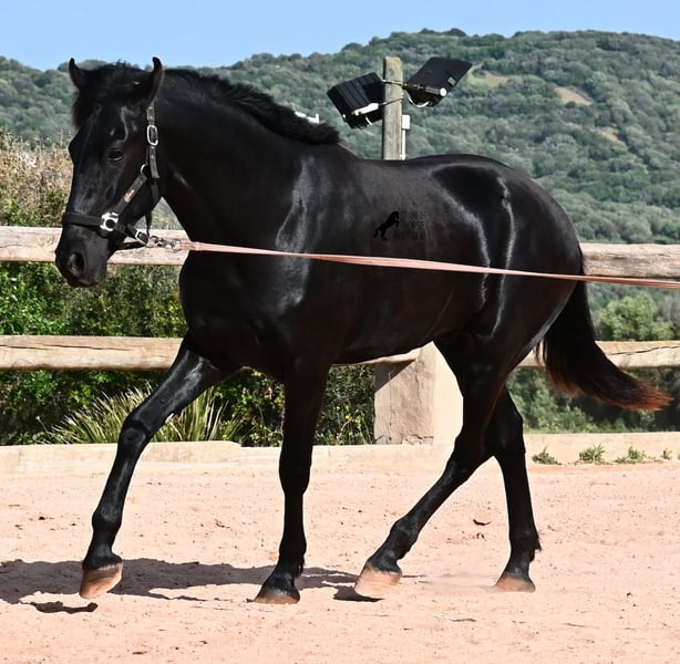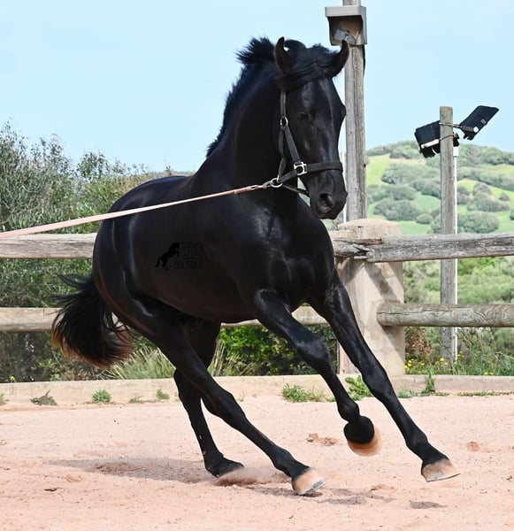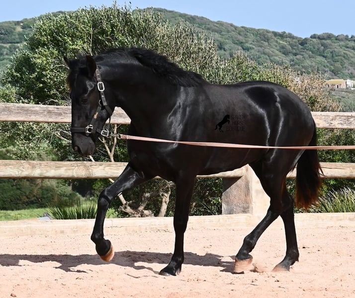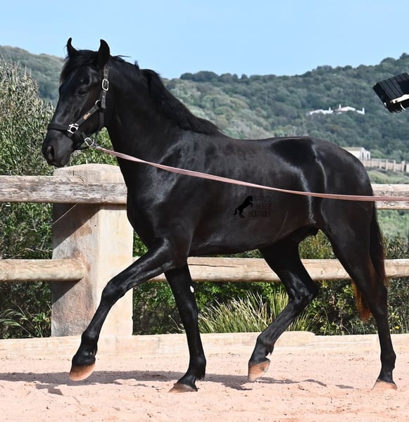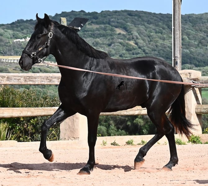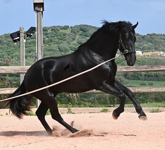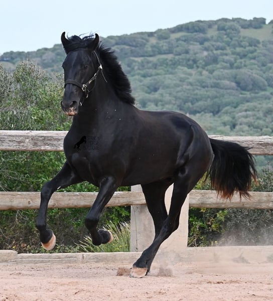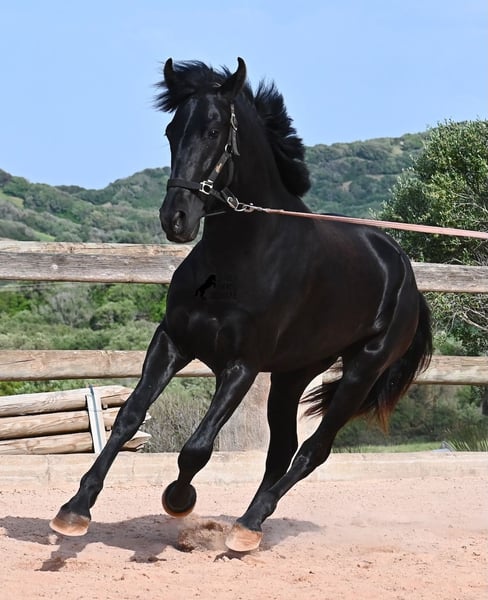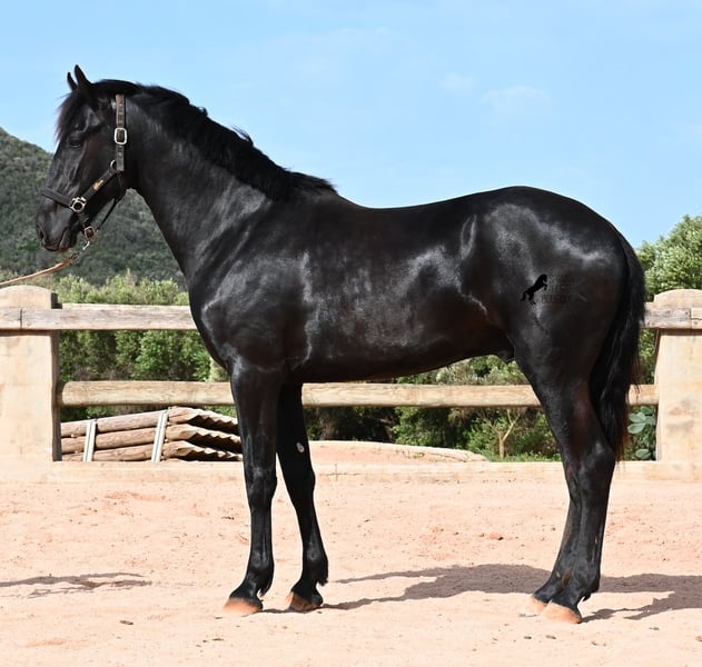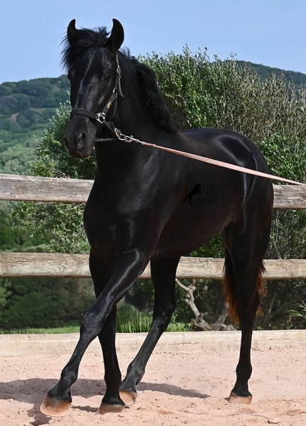 Este semental Menorquín de pura raza nacido en 2024 es un joven elegante con mucho potencial. Alegre, como se espera de un potro joven, confiado con las personas y un diamante en bruto que podrá brillar en muchas disciplinas en el futuro. Tiene movimientos muy correctos, es muy ágil, fuerte en la parte trasera y armonioso en su estructura. Por ello, será un candidato ideal para la doma clásica, la equitación de trabajo, el concurso completo y, por supuesto, como caballo de ocio, ¡seguro que le proporcionará mucha alegría! Actualmente, se le está enseñando a trabajar en la cuerda con cabezada de establo, para construir lentamente una base de trabajo y pasar más tiempo con él. Aparte de eso, disfruta de la vida de potro en la manada, pasa 24 horas en un paddock resistente sobre suelos duros y recorre muchos kilómetros jugando con sus amigos. Es robusto, tiene buena calidad de casco y patas claras. En la manada, busca el contacto con las personas y ya se vuelve muy cariñoso. Su marca negra también es excelente, ya que incluso aparecen puntos de leopardo, a pesar de estar siempre al aire libre y expuesto al sol. Su padre es un semental destacado, ¡tres de sus descendientes han sido campeones de raza! La madre aporta sangre de campeona en su linaje, y en combinación, seguramente también será interesante para criadores en el futuro. Ya mide unos impresionantes 1,61 m y, además de que todavía crecerá varios centímetros, su exterior será aún más barroco. Es manejable con cabezada, muy bien educado en el trato, sin comportamientos de semental, y siempre listo para emprender el gran viaje, ¡esperamos que sea contigo! Para quienes no puedan tener un semental, existe la opción de castración en el lugar. Actualmente, está en Menorca. Videos y pedigrí disponibles bajo solicitud. Con gusto puedo organizar en el lugar una revisión veterinaria, castración, transporte o incluso tu viaje, si deseas venir a verlo en persona. Para más detalles, visita mi página o contacta conmigo. ¡Saludos desde España!