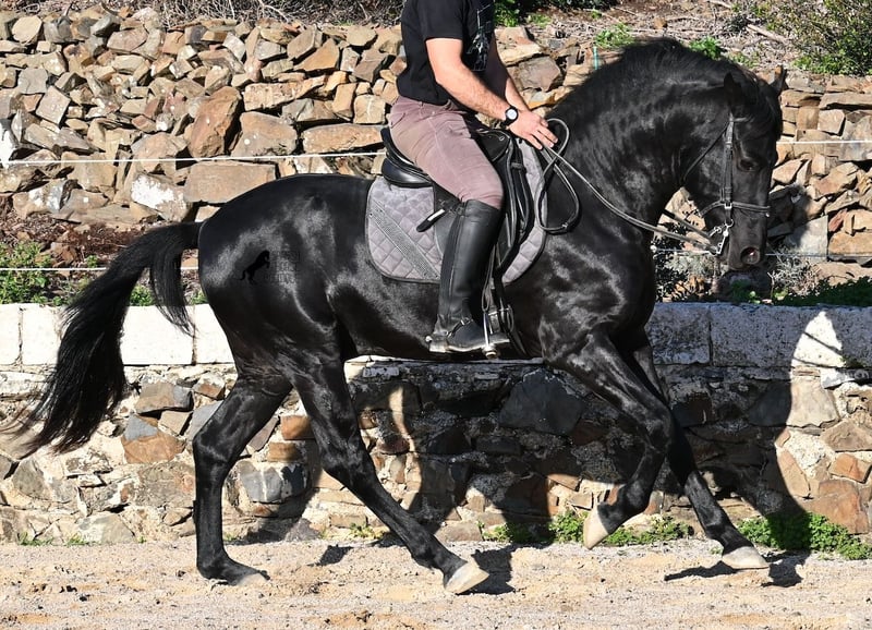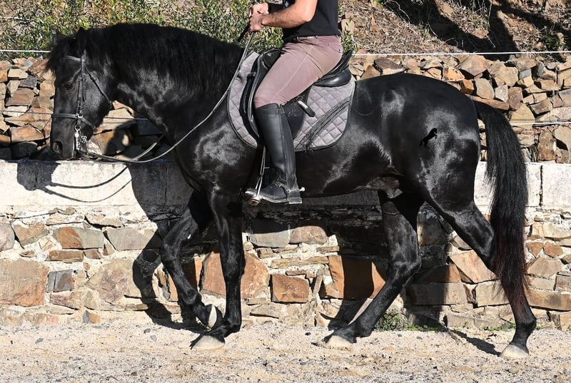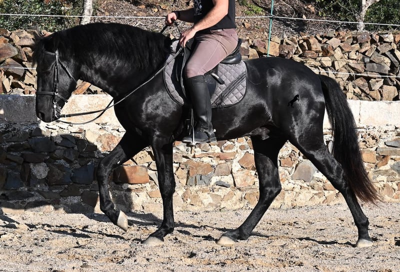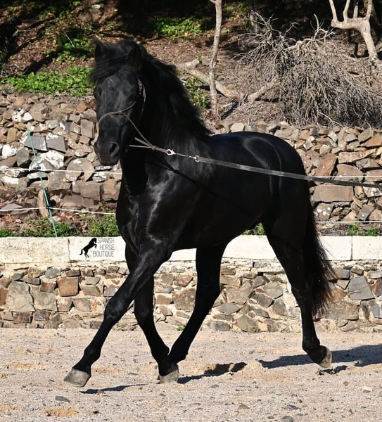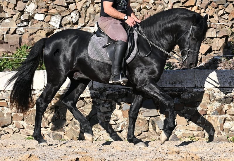 Ecco la traduzione in italiano del testo, conforme alle linee guida fornite: --- Questo stallone Menorquín, nato nel 2022, è davvero un tesoro dal cuore grande. È estremamente coccolone, rilassato e, nonostante la giovane età, si dimostra già un cavallo affidabile sotto la sella. Una vera rarità, perché a quell’età ci si aspetterebbe già qualche capriccio da puledro. Che si tratti di trattori, camion, cantieri, pozzanghere, fuoco o mare, attraversa tutto senza muovere le orecchie (video disponibili!). Sotto la sella, possiede una buona base di lavoro e si sta già iniziando a lavorare al galoppo partendo dal passo. Essendo così tranquillo e attento, impara molto rapidamente. In campagna si comporta bene e, nonostante il terreno molto roccioso, si muove senza problemi anche senza ferrature. Al lungo rein, si muove in modo molto rilassato nel quadrato, riflettendo il suo carattere docile. È cresciuto nel branco di stalloni in stabulazione robusta, quindi è molto ben socializzato. Da alcune settimane è stato messo in stalla, poiché il clima a Minorca è diventato molto avverso, e ora viene allenato regolarmente per la vendita. Anche nel rapporto con le persone è molto tranquillo, sia quando viene spazzolato, si puliscono gli zoccoli, si conduce (anche passando accanto ad altri cavalli), sia durante le operazioni di selle e briglia. È così ben messo che sembra molto più vecchio. Poiché il suo altezza al garrese di 152 cm è inferiore alla misura minima richiesta per i stalloni (154 cm), il breeder lo cede a un prezzo molto conveniente! C’è la possibilità che cresca ancora abbastanza da poter essere successivamente approvato (misura minima 154 cm), anche se il breeder ha in mente obiettivi di selezione più ambiziosi. A Minorca, gli stalloni vengono tradizionalmente impiegati nelle feste locali, ma, secondo il veterinario del breeder, il suo tono è molto discreto, quindi anche questa opzione non viene preferita. Si tratta di un cavallo di Classe 1, il che significa che può autoregolarsi da solo man mano che acquisisce più resistenza! Questo non influisce in alcun modo sul suo lavoro, e ho anche realizzato video e registrazioni audio per poterlo dimostrare. Per questa serie di dettagli, viene venduto a un prezzo estremamente vantaggioso rispetto alle attuali quotazioni dei Menorquín. Se non si desidera mantenere uno stallone, è ovviamente possibile procedere alla castrazione sul posto. Un vero tesoro a un prezzo sensazionale! La sua sede è a Minorca. Video e pedigree disponibili su richiesta. Posso organizzare una visita con esame veterinario (AKU), addestramento, castrazione, trasporto o anche il vostro viaggio, qualora vogliate venire di persona a vederlo. Dettagli disponibili sul mio sito o in colloquio. Saluti dalla Spagna