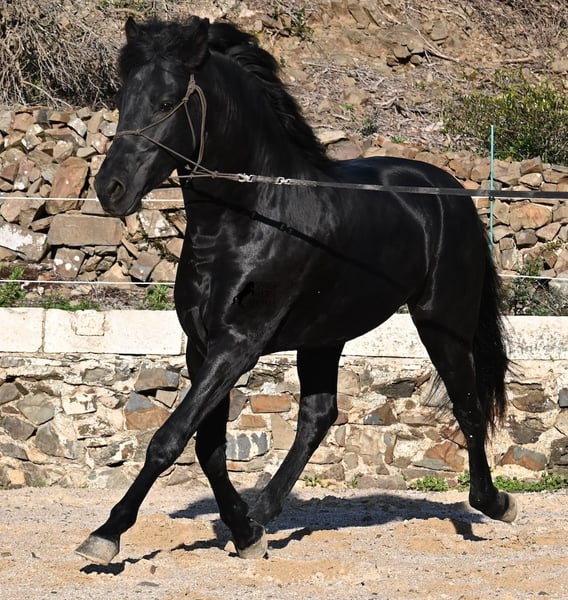 This 2022-born purebred Menorquín stallion is truly a heartwarming treasure. He is extremely affectionate, relaxed, and despite his young age, already a reliable riding horse under the saddle. This is a rare find, as one would expect playful antics from a horse of his age. Whether it’s tractors, trucks, construction sites, puddles, fire, or the sea, he passes everything calmly and without even flicking an ear (videos available!). Under the rider, he has a solid foundation and we are already working on cantering from the walk. Due to his calm and attentive nature, he learns very quickly. In the field, he is well-behaved and can go barefoot over very rocky terrain without any issues. On the long rein, he moves relaxedly in the arena, reflecting his good-natured character. He grew up in a herd of stallions in robust management, which has made him very well socialized. A few weeks ago, he was gelded, as the weather on Menorca became very adverse, and he is now being trained more regularly for sale. He is also very calm in handling, whether it’s grooming, picking up hooves, leading (past other horses), or saddling and bridling. He behaves as if he were much older, given his solid build. Since his height at the withers is 152 cm, which is below the minimum size for stallions, the breeder is offering him at a very favorable price! There is a possibility that he will still grow enough to be licensed later (minimum height 154 cm), but the breeder’s larger breeding goal remains a priority. On Menorca, stallions are traditionally used in fiestas, but since the veterinarian of the breeder states he has a subtle tone, the breeder prefers not to participate. He is classified as Class 1, meaning he can self-regulate as he gains more stamina! This does not affect his work in any way, and I have also made videos and audio recordings to share this. Due to this accumulation of small details, he is being offered at an EXTREMELY affordable price compared to today’s market value of Menorquín horses. For those who cannot or do not want to keep a stallion, castration on site is of course an option. A true treasure at a sensational price! Location: Menorca. Videos and pedigree available upon request. I am happy to organize an ultrasound, training, castration, transport, or even your journey if you come to see him in person. Details can be found on my website or in a personal conversation. Saludos from Spain