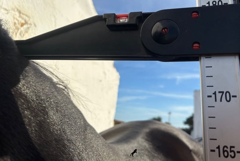 Ce mâle Menorquín pur-sang, né en 2017, a encore une fois prouvé lors de notre séance photo qu’il possède la calme absolue d’un Menorquín. Par vent de 70 km/h et rafales de tempête atteignant 100 km/h, il m’a presque fait verser des larmes, tant il est resté serein, comme si c’était une journée magnifique ! Sorti du van, son tapis vole au vent, mais il ne bouge pas d’un iota. Tout autour, ça claque et le plastique vole, mais il reste concentré. Malgré le froid et l’environnement (il a été amené dans un autre élevage pour un meilleur manège, afin de réaliser les vidéos de dressage), il n’est pas « frais » ou nerveux, mais manifeste clairement sa joie de pouvoir travailler avec plaisir. La jolie crinière à la mode baroque n’a pas résisté à la tempête, mais cela met en valeur sa crinière. Le voir travailler est une véritable joie, et quiconque aura la chance de le monter s’envolera sur un nuage rose ! Il est presque un maître d’école, car il a beaucoup à offrir : travail latéral dans toutes les allures, pirouettes (même en galop), changements de pied volants, galop en dehors, épaules en dedans, et tout cela sans mors ni éperons. On lui donne même en galop toute la rêne, et il reste en rythme, s’étire agréablement et ne pense même pas à accélérer sans qu’on le demande. Il a déjà prouvé ses compétences avec succès à plusieurs reprises lors de compétitions, et il n’est pas seulement primé, mais il a également été élevé du rang de reproducteur de base à celui de Recommandé (pour la reproduction). Il a une descendance, mais reste un mâle bien élevé, sans bêtises. Ceux qui ne peuvent pas garder un étalon ont la possibilité de le faire castrer sur place ! Pour ceux qui recherchent plus que du simple dressage, il est idéal, car il peut aussi tirer en attelage, même en paire, et il a déjà conduit un couple lors d’un mariage. Son pedigree est impressionnant, et sa taille aussi : avec 174 cm de hauteur au garrot, il est actuellement le plus grand Menorquín que j’ai mesuré à ce jour ! Il peut évoluer en extérieur aussi bien en groupe qu’en solo, et, typiquement Menorquín, il passe sans problème sur les terrains accidentés, rocheux. Prix conforme à la qualité ! Il se trouve à Minorque. Videos et pedigree sur demande. Je peux également organiser une visite avec contrôle vétérinaire, débourrage, castration, transport ou même votre voyage, si vous souhaitez venir le voir en personne. Détails disponibles sur mon site ou lors d’un entretien. Cordialement depuis l’Espagne