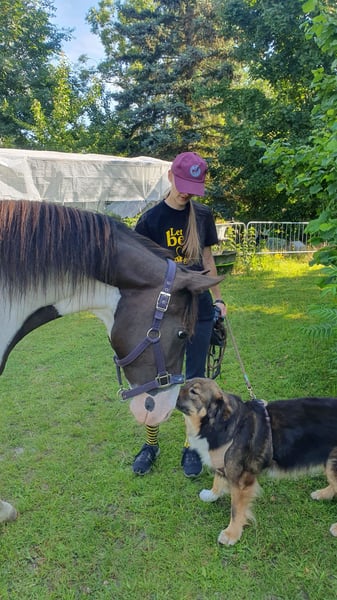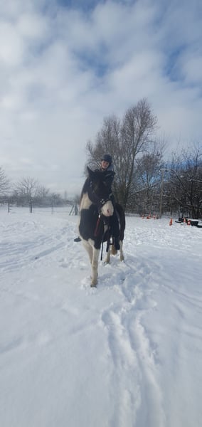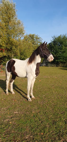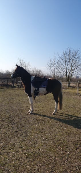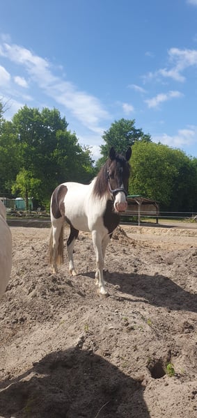 Liebe Pferdemenschen, ich verkaufe einen traumschönen Missouri Foxtrotter in der seltenen Farbe Rappisabell-Schecke. Stockmaß aktuell 155 cm, 5 Jahre alt, noch ungeritten und allerbestens aufgezogen. Pawnees Bela K.R. stammt aus bester Zucht (rote Papiere vom Bayrischen Zuchtverband) und hat eine so feine Ausstrahlung und so schönen Seele, dass ihm die Herzen zufliegen - er ist ein total liebes, verschmustes, super freundliches und sehr menschenbezogenes Pferd, souverän, neugierig, verspielt und lustig. Bela blieb über ein Jahr mit Mama in seiner Herde, stand danach noch mit „Tanten“ und seinem Halbbruder zusammen, mit dem er aktuell immer noch in einer größeren gemischten Herde steht, so dass er keinerlei Absetzungs- bzw. Trennungstraumata erlitten hat. In der Herde ist er umsichtig, eher rangniedrig, verspielt und ein Gentleman den Stuten gegenüber. Bela ist absolut zaunsicher. Er wird top gepflegt und ernährt, wurde stets entwurmt und jährlich im Frühjahr komplett durchgeimpft, auch WNV. Er hat dichtes glänzendes Fell, aktuell süßen Winterplüsch und braucht keine Decke. Als 2-Jähriger wurde er kastriert und hat laut Tierärztin gute Hufe und super Zähne - die Wolfszähne wurden im Sommer 2024 gezogen. Er ist von robuster Gesundheit und war stets absolut gesund. Vor gut einem Jahr haben wir mit Unterstützung einer lizensierten Gangpferdetrainerin mit Bodenarbeit begonnen und ihn auch behutsam an das ganze Equipment, das Satteln und Aufsitzen gewöhnt. Bela liebt die Freiarbeit, lernt sehr schnell und folgt extrem gut, reagiert ganz fein auf alle Signale und „liest“ die Gedanken und Gefühle seines Menschen förmlich. Er kennt ebenfalls Kappzaum, Langzügel, Longenarbeit nach Babette Teschen, aber auch Horsemanship Übungen, inspiriert von Jenny und Peer. Warten, Einsprühen, Hufe geben, in den Hänger gehen etc. wurde selbstverständlich eingehend beübt. Bela ist sehr motiviert mit „will to please“, kommt auf Zuruf, liebt Übungen, Spiele und seine Menschen. Laut zweier Trainerinnen ist er sehr ausdruckstark mit natürlicher sehr guter Selbsthaltung und ein begabtes elegantes Top Gangpferd mit geschmeidig schönen Gängen. Für das Herausreiten der Gänge braucht es dann Zeit und Training - Bela bietet einfach viel an. Da er so offen, fein und unverdorben ist, gebe ich ihn nur in allerbeste Hände und nur in Offenstallhaltung mit Artgenossen. Bela wird aus gesundheitlichen Gründen meinerseits verkauft. Ich freue mich auf ansprechende Zuschriften, mit herzlichen Grüßen