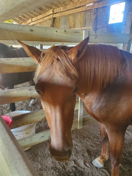 Missouri is a stunning 12 year old mare. She stands 15.1 hands tall and weight around 1200 lbs. She has a smooth, flowing gait that makes every ride unforgettable. She's done countless trail rides and has spent time gathering cattle. She is beautifully neck reined and doesn't spook. She will meet you at the gate, ready for the next adventure.