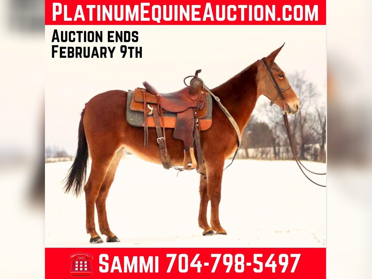 ONLINE AUCTION Place your bids at www.PlatinumEquineAuction.com Starting Bid $3500 Auction ends February 9th, 2025 Need a new saddle? Check out White Rock Saddles on our website or Facebook! Rose is an 8 year old, 14 hand gaited Molly mule. Rose has a very nice ground covering, ear flopping walk when she gets in gear and headed down the road or trail. Rose is experienced on the trails. She crosses natural obstacles with ease. Goes through and across water crossings without worry. She is sure footed on narrow and technical trails. She steps over logs and goes through ditches. Rose rides out alone or with a group. She can keep up with other gaited animals or ride slower with quarter type. She is a mountain goat type, if you point her nose, you better be ready to go! She is a forward mule with a lot of heart to ride all day. Rose stands nicely to saddle. She ties and clips. Has nice stall manners. Loads and unloads easily. Rose rides off nicely if she has had time off, but like anyone excels when ridden in a regular riding program. She has been on quite a few big, organized rides. We have ridden her through our herd of cows and checking fences with no issues. Rose is the type of mule that you need to earn her trust and respect. It’s easy to get, but experienced mule owners understand her type. She will do best in a home with 1 or 2 riders, not so much for a guest or “dude” type of mule. With that being said, she will give her person 110% every ride and only gets better the more she knows and understands her person. For more information, please call or text Sammi Waugh 704-798-5497 Located in Brooksville, KY. ONLINE AUCTION Place your bids at www.PlatinumEquineAuction.com Starting Bid $3500 Auction ends February 9th, 2025 Need a new saddle? Check out White Rock Saddles on our website or Facebook!