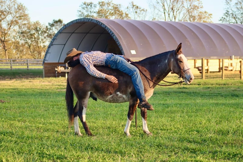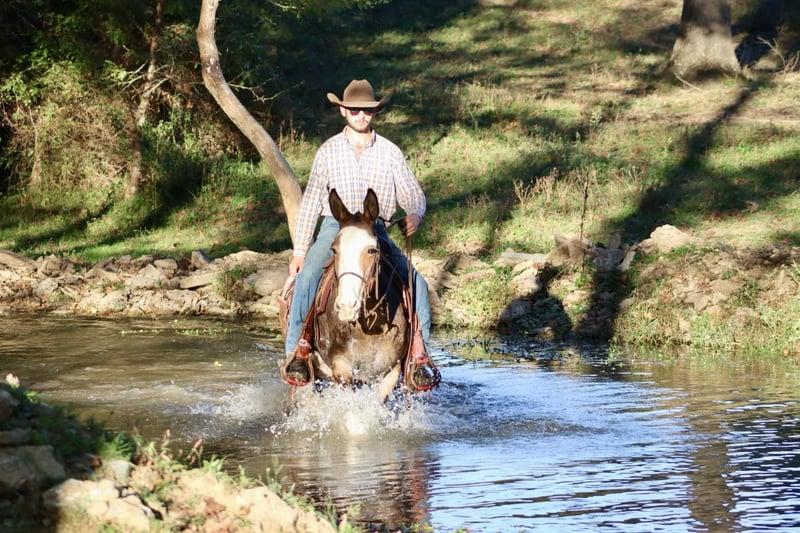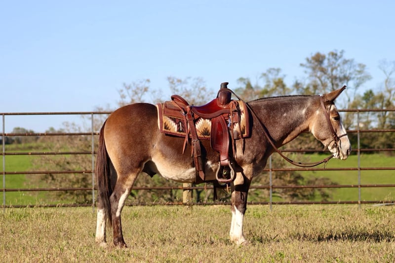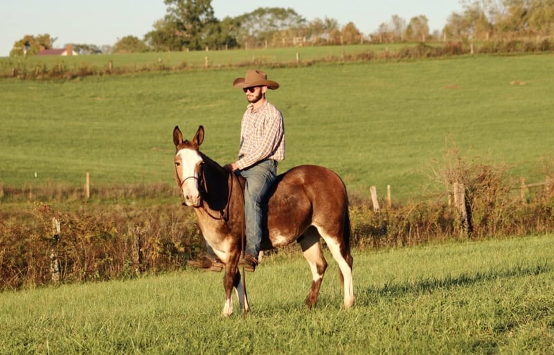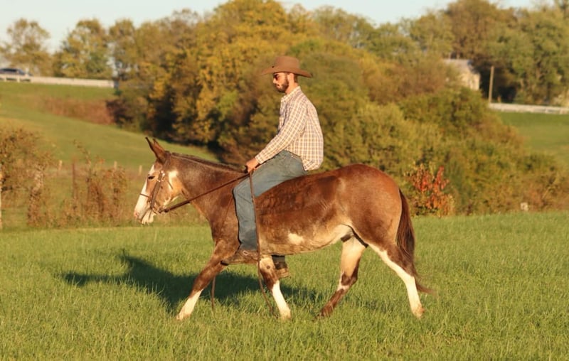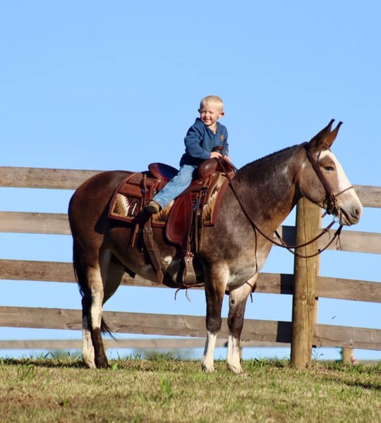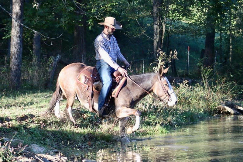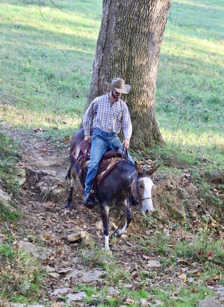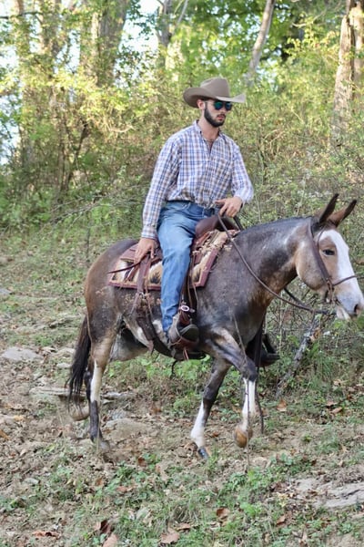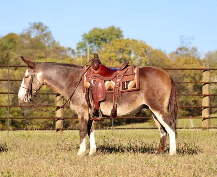 ONLINE AUCTION Place your bids at www.PlatinumEquineAuction.com Starting Bid $3500 Auction ends October 27th, 2024 Need a new saddle? Check out White Rock Saddles on our website or Facebook! Theodore is just as snuggly and sweet as his name portrays him to be. This handsome 8 year old, 14.1 hand John mule is the one we get calls for all the time. If you want, quiet, safe, gentle, but most importantly a new family member, he is the one for you. Theodore is excellent on the trails. Whether you are alone or in a group, he rides the same. He is excellent in various terrain whether it’s a wide road or a narrow path. He goes down banks nicely, crosses water, steps over logs, and goes away from the group when asked. Theodore rides in a britchen or crupper with no issues. He neck reins nicely. He has a super smooth jog and a rocking chair kind of lope. He does all of that bareback as well. You can even ride him with just a halter. Theodore is easy to catch, in fact he is usually waiting for you at the gate. He stands quietly while tied. He trailers well. He gets along nicely in a herd as well. Theodore has been on countless camping trips and ties out on the high line with ease. Whenever we have an inexperienced rider that wants to to ride with us, Theodore is the one we put them on, but he is well trained enough to be enjoyable for more experienced riders too. He stands nicely for the farrier. He handles the chaos of family and kids with grace. Simply put, Theodore is the entire package. For more information, please call or text Sammi Waugh 704-798-5497 Located in Brooksville, KY. ONLINE AUCTION Place your bids at www.PlatinumEquineAuction.com Starting Bid $3500 Auction ends October 27th, 2024 Need a new saddle? Check out White Rock Saddles on our website or Facebook!