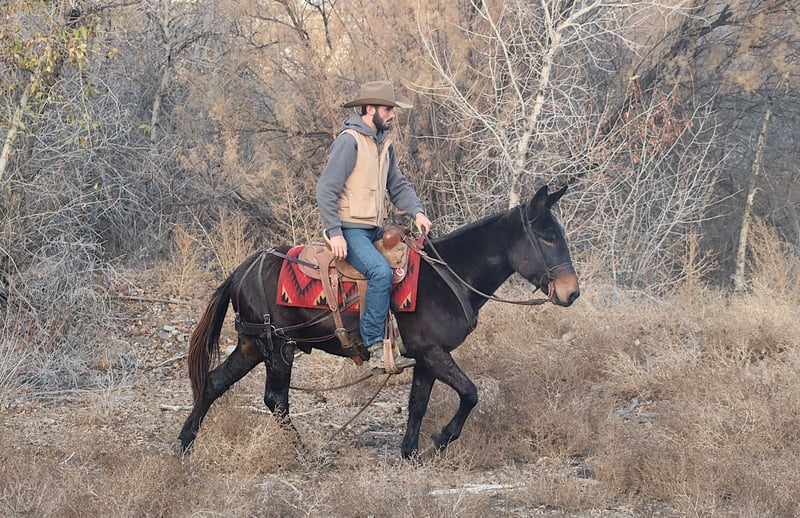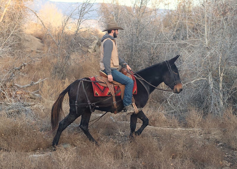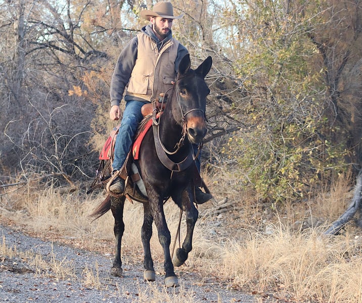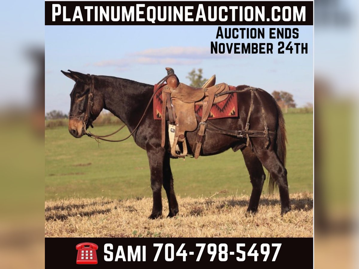ONLINE AUCTION Place your bids at www.PlatinumEquineAuction.com Starting Bid $3500 Auction ends November 24th, 2024 Need a new saddle? Check out White Rock Saddles on our website or Facebook! Pepper is a 9 year old, 14.3 hand John mule. Pepper is that reliable mule that you know you can pull out and he will get you safely where you need to go. He stands tied quietly to tack up. He stands to mount, and he will ride off the same every day whether you ride him every day, once a month, or once a year. He is a mountain goat when it comes to the trails. There is not terrain to rough for this guy. He is careful with where he puts his feet. He steps over logs, crosses water, goes up and down banks, slides down soft rock and clay banks, and will go just about anywhere else you want to go. He travels out alone or with the group. He is a great hunting mule. He has been out on 3rd season Colorado Elk Hunt this year. You can saddle him up in the dark and ride out to scout elk. You can ride him with your backpack on and gun sling attached. He stands quietly when you need to stop and scout. He doesn’t get rattled if you come across mule deer, or even white tail back in the east. He stands out on the highline overnight with no issues. Pepper gets along great in a herd situation when turned out. He neck reins. While I would not call him truly gaited, he has an extremely nice, ground covering walk. He gets into a rhythm and he starts head shaking and ear flopping with the best of them! He also has a very nice, smooth rocking chair lope. Pepper is just a nice mule that is reliable and ready for the day when you get him out to work. For more information, please call Sammi Waugh at 704-798-5497 Located in Brooksville, KY. ONLINE AUCTION Place your bids at www.PlatinumEquineAuction.com Starting Bid $3500 Auction ends November 24th, 2024 Need a new saddle? Check out White Rock Saddles on our website or Facebook!