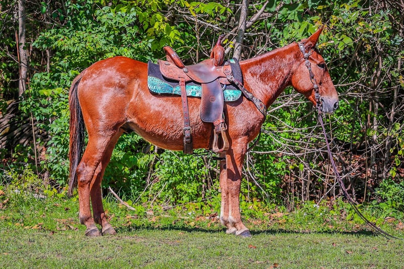 ONLINE AUCTION Place your bids at www.PlatinumEquineAuction.com Starting Bid $3500 Auction ends October 20th, 2024 Need a new saddle? Check out White Rock Saddles on our website or Facebook! John is a super nice SORREL JOHN MULE that has been trained and shown in ranch pleasure. He stands 14.3 hands tall and can do it all! He is 11 years old and rides around like a Quarter Horse. He is well trained and a fancy broke mule with lots of eye appeal. He has been trail ridden and has done all the trail obstacles including crossing bridges, tarps, over poles, and tilt bridges. He will side pass, yield to leg cues, has a one step lope, and a great stop. John has been used to pony colts and drag deer out of the woods. He has been in steep country and rocky ground. He is sure footed and a really comfortable 4 wheel drive mount. He has had guns shot off of his back and been used for hunting in the mountains. He is the first one to meet you at the gate, he is personable and likes a job. He rides out alone, is traffic safe, and will also ride in a group. He is fine with dogs trailing his heels. He picks up all four feet, stands to be shod, tacked, mounted, and groomed. He has excellent ground manners. He is fine to handle his ears. John is a super nice mule to be around that is well trained, seasoned, and a nice mover. Call HH Horses Erin 304-238-4155 Located in Flemingsburg, KY. ONLINE AUCTION Place your bids at www.PlatinumEquineAuction.com Starting Bid $3500 Auction ends October 20th, 2024 Need a new saddle? Check out White Rock Saddles on our website or Facebook!