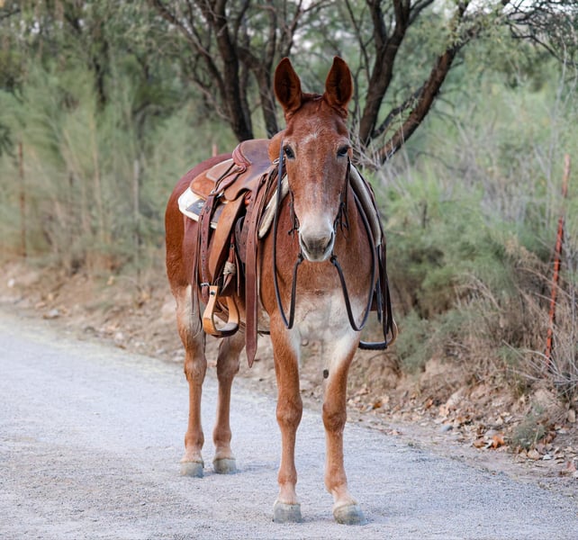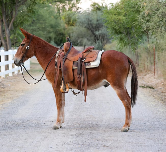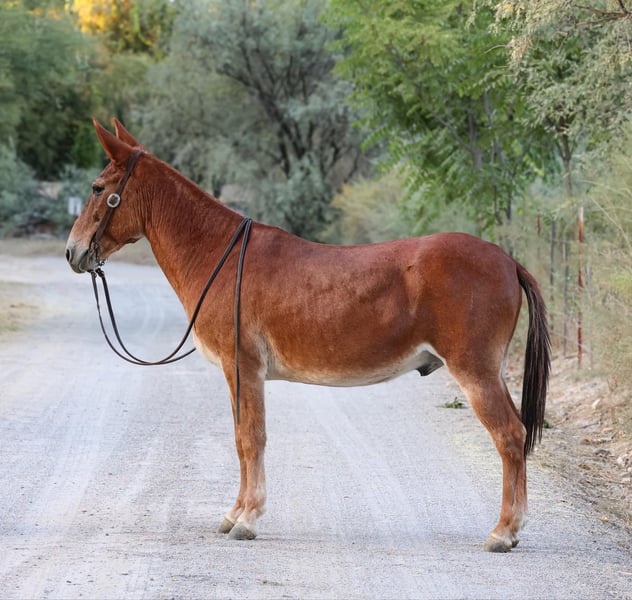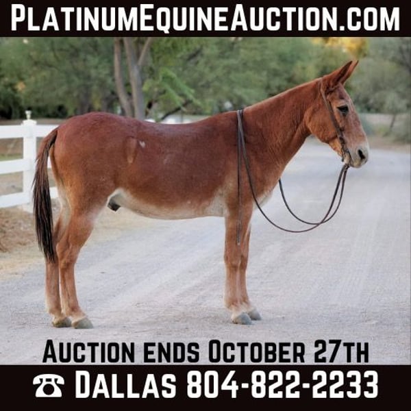 ONLINE AUCTION Place your bids at www.PlatinumEquineAuction.com Starting Bid $3500 Auction ends October 27th, 2024 Need a new saddle? Check out White Rock Saddles on our website or Facebook! Bingo is a 12 year old John mule standing 14hh tall. Bingo is as gentle as he is versatile! Good to groom, saddle, bridle, and overall enjoyable to be around! Great with his ears and feet! Point this mule in any direction and he’ll be happy to trek through absolutely anything you throw at him. Bingo has been on countless hunting and packing trips and ready to take on any adventure you’d like to embark on! Whether you’re going on a group camping trip or a solo adventure, this mule will be a pleasure to ride! Located in Camp Verde, AZ. Can help arrange hauling anywhere in the US! Contact D/C Equine Dallas 804-822-2233. ONLINE AUCTION Place your bids at www.PlatinumEquineAuction.com Starting Bid $3500 Auction ends October 27th, 2024 Need a new saddle? Check out White Rock Saddles on our website or Facebook!