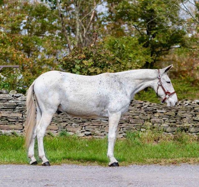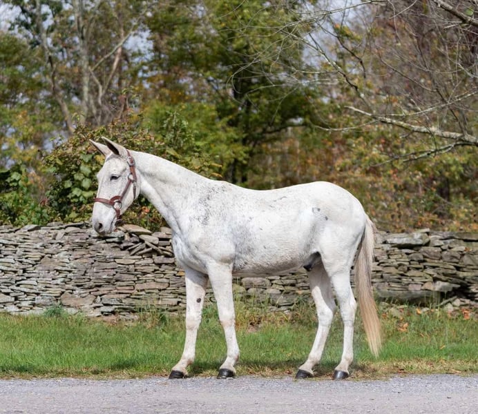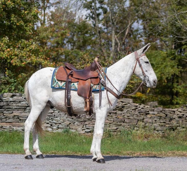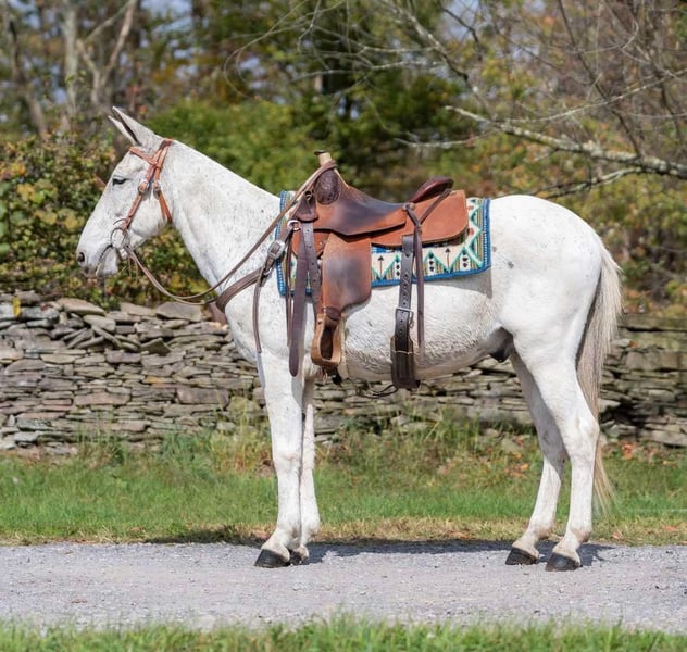 ONLINE AUCTION Place your bids at www.PlatinumEquineAuction.com Starting Bid $3500 Auction ends November 3rd, 2024 Need a new saddle? Check out White Rock Saddles on our website or Facebook! Mr. BoJangles… If you’re looking for a John mule the whole family can enjoy then meet Mr. Bojangles or “Jangles” as we call him! Jangles is a 12 year old John mule that stands 14.1hh and is bump and blemish free. If you need a trail boss 7 days week he’s your guy. Only ride on weekends when it’s sunny and 75°? He does just fine sitting and then being a weekend warrior too! Jangles is easy to live with and requires no special care/diet or maintenance. He is barefoot sound and happy! Jangles will live in a stall or turned out just as peacefully. He gets along with other mules and horses and has been around dogs, pigs, cows and goats. He will ride around the arena walk, trot and lope as well as takes correct leads and a jump. He is really soft in the mouth through his turns and will stop when you say whoa he will even collect into contact. He has been trail ridden up and down the east coast and through the steep valleys and rock formations of Hocking Hills State Park in Ohio. This mule is a point and shoot trail boss, he will negotiate any terrain and go wherever you point. He is fine with water, logs, 2 ways traffic, passing hikers and bikers as well as any wildlife you’d expect to bump into out on the trail. I would easily let a kid trail ride all day long on him as he isn’t at all spooky or naughty and has no tricks up his sleeve. Jangles is one the most gentle trail mules we have ever had. I also love that he can lope circles in the arena while carrying a flag or drag a tarp, pull a sled or even take him coon hunting at night! He’s your one stop shop for “good mule” Jangles is easy to trail loads and stays tied on a single or cross tie, good for grooming and saddling and takes the bit nicely. He stands to be mounted from the ground or a mounting block. He sells sound with no previous medical history and no vices. All prospective buyers are welcome to have any type of pre purchase vet exam done at their expense. If you need assistance in arranging hauling please don’t hesitate to ask, we would be happy to share a list of haulers we have used and recommend. Located in Everett, PA. Call Benny Hall 814-979-2046 with any questions. ONLINE AUCTION Place your bids at www.PlatinumEquineAuction.com Starting Bid $3500 Auction ends November 3rd, 2024 Need a new saddle? Check out White Rock Saddles on our website or Facebook!