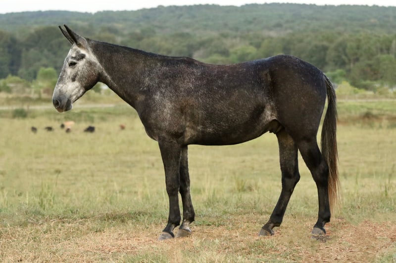 ⚜️ 𝓽𝓱𝓮 𝐇𝐨𝐫𝐬𝐞𝐦𝐚𝐧'𝐬 𝓢𝓱𝓸𝔀𝓬𝓪𝓼𝓮⚜️ Happening now thru MONDAY | DECEMBER 1st - Available EXCLUSIVELY on HorseBid's website! For more details and to register visit: www.Horsebid.com CONSIGNOR CONTACT: Angstman Performance Horses & Mules 515-408-7184 LOCATION: Huntsville, TX BREED: Mule REGISTERED: No COLOR: Blue grey HEIGHT: 14.2 AGE: 3 GENDER: John Mule Bullfrog is handsome 3 yr old John mule standing 14.2 hands. This charming young mule is out of a quarter horse mare and mammoth jack. He has a ground covering walk that’ll carry you anywhere you’d like to go!!! Bullfrog has been used outside on the ranch and knows what an honest days work is!!! We have roped and doctored cattle out in the pasture on him and started team roping on him in the arena. He has been trail rode out in the woods and led pack horses, drug logs, crossed creeks, he will lead the group or follow along. Whether it’s in the arena or out in the pasture Bullfrog will trot and lope nice circles on a loose rein. He will ride one handed, turn around like a horse, sidepass, open gates, and go all day long. On the ground Bullfrog is gentle to be around, he is good with his feet and ears. He does have to warm up to new people and is not yet for a beginner rider. He is a good young mule that has seen lots of miles already, with more time and maturity he will be a great mule to enjoy many years on!!!