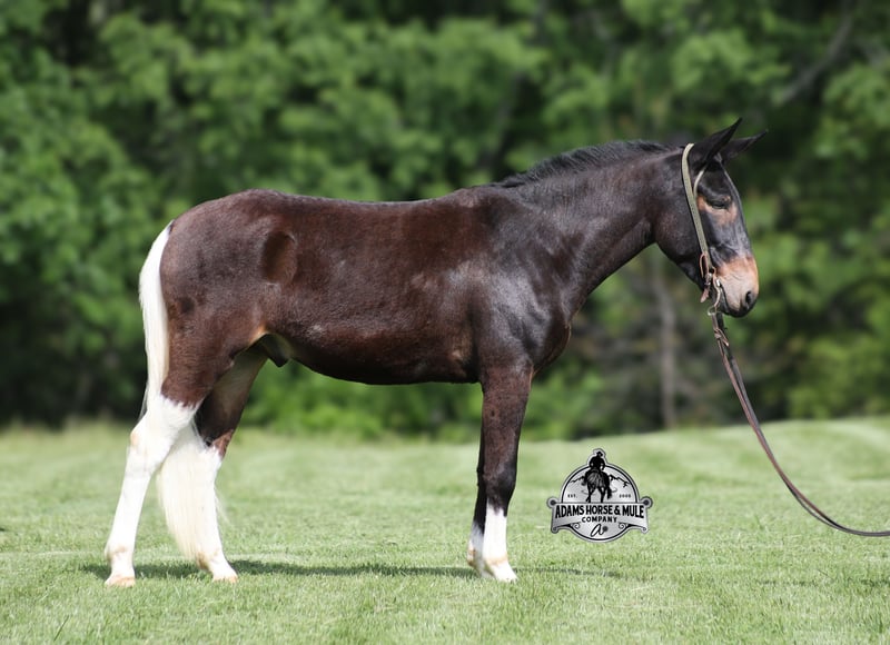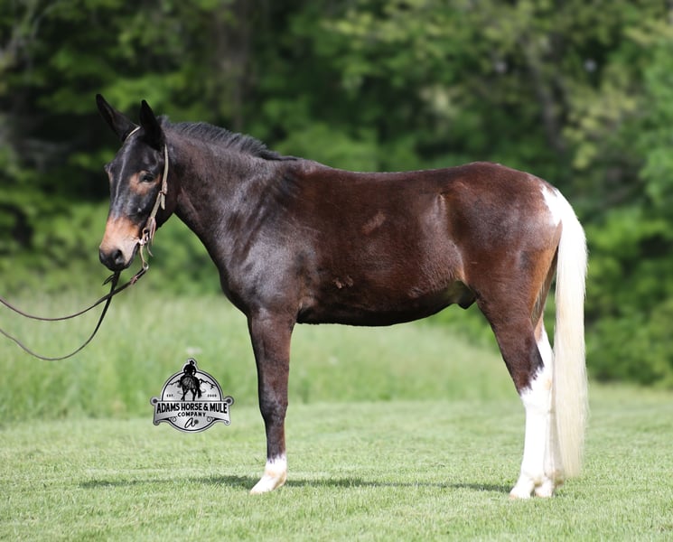 If you are a lifelong mule fan or just looking for your first one… Lariat is the one for you!!! If you want smart, reliable, easy going, user friendly, safe and a best friend… all wrapped into one??? Here he is! Lariat was started and trained by the best in the business when he was two and a half years old and has graduated the natural horsemanship program where he learned several tricks (side passing to a mounting block, laying down for mounting and setting on his rump) doing the natural horsemanship program also allowed Lariat’s personality to shine as he is a total in your pocket kind of fellow and is everyone’s best friend! He is 4 years old, is 15.1h and is well built. Lariat is a mule for all jobs… he is out of a Color Me Smart ($3.6 million sire) bred mare, so he is bred to ride around the ranch and knows cows! Whether you need to head out on the ranch and herd some cattle, need to heel calves and drag them to the branding fire, if you just want to ride some beginner type trails, if you want to go hunting up in the high country of Wyoming or Colorado and tackle the roughest of all trails, if you want to hook up and take a Sunday afternoon carriage ride, maybe you just want a friend to lay down under a shade tree and talk to… Lariat will do it all!!! He is super safe, absolutely no foolishness or bad habits. He is easy with feet and ears. Lariat has been ridden by all ages from 6 to 76 and is 100% safe. On the trails he is great and will cross creeks, ditches, logs and navigate rough, rocky areas. He has been ridden many miles in the mountains of Eastern Kentucky and encountered every obstacle possible on the trails. He has been on several week long camping trips. He has been elk hunting out west and also has been packed. He hauls well and picket line ties and ponies. He will go up or down even the steepest slopes, across deep creeks, over downed trees, and over all types of rough terrain while still being sure footed. Lariat has been ridden at night, lead dogs and been coon hunted off of, gun fire does not bother him. Lariat is fancy broke and well trained! He will one hand rein around, spin circles, side pass and back with ease. He will lope perfect circles and slide stops! He has been exposed to all kinds of wildlife such as deer or turkey and will go anywhere that he is asked too. You will drive the wheels off of a new truck to find one that even close to Lariat, we invite anyone to come see in person just how special he is or we can facetime with you as well. Just give us a call and feel free to call Eric 606-308-2461 with any questions. Go to visit our website for more pics and a video www.AdamsHorseAndMuleCo.com AHAMC has been in the horse business and sold horses over the internet since 2005. We have a long track record of success with hundreds of happy customers. We work hard to match riders with the correct horses and specialize in beginner safe, family friendly horses that have been used and checked out by our family! We can set up transportation anywhere in the US and look forward to working with you.