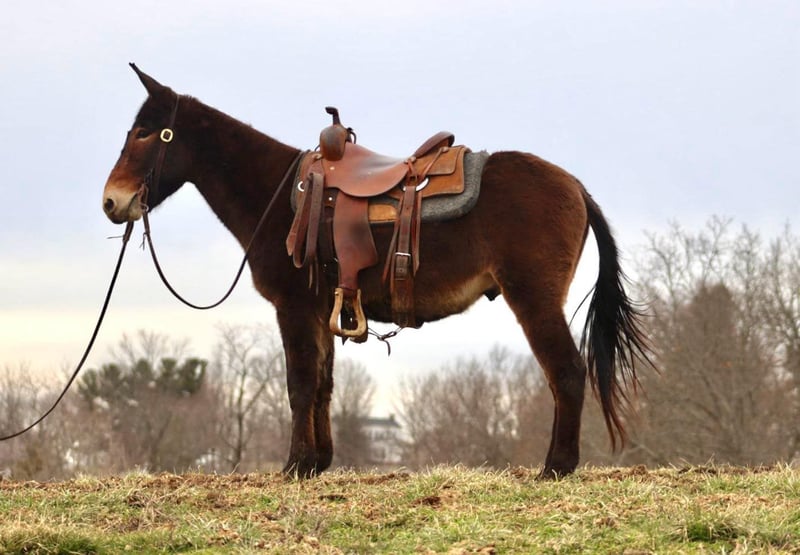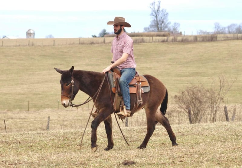 ONLINE AUCTION Place your bids at www.PlatinumEquineAuction.com Starting Bid $3500 Auction ends April 13th, 2025 Need a new saddle? Check out White Rock Saddles on our website or Facebook! Gus is a 5 year old, 14.2 hand John mule. He is a quiet, safe, gentle, and friendly mule. He’s been trail ridden throughout his life and that is where he shines. He is a mountain goat type, if you point his nose, he will go. He is not a spooky type of mule that is looking for boogers to jump at. He rides anywhere in the group. His confidence is growing as the lead mule and he does well in that spot, but he also follows along really well too. Most of his riding has been by a weekend warrior type person that likes to relax on the weekends by riding and drinking beer, so following has been his forte. But with that being said, everyday he is getting better about leading and being more confident out alone. Gus crosses bridges, steps over logs, crosses rivers, slides down steeper banks, and climbs back up the other side. He rides down the trail or road nicely in a loose rein. He has a phenomenal lope that is very comfortable. Gus rides softly. He occasionally has a young mule moment about turning or going somewhere “off the path” but just a little encouragement and he does what he is supposed to do. Every week those little things happen less and less as he continues to get better with each ride. Gus stands to saddle and mount. We’ve thrown a rope off of him. He has ridden through the cows. He trailers well and gets along with others in the group setting turned out. He also has nice stall manners. He is a solid young mule ready for the spring and summer rides! For more information, please call or text Sammi Waugh 704-798-5497 Located in Brooksville, KY. ONLINE AUCTION Place your bids at www.PlatinumEquineAuction.com Starting Bid $3500 Auction ends April 13th, 2025 Need a new saddle? Check out White Rock Saddles on our website or Facebook!