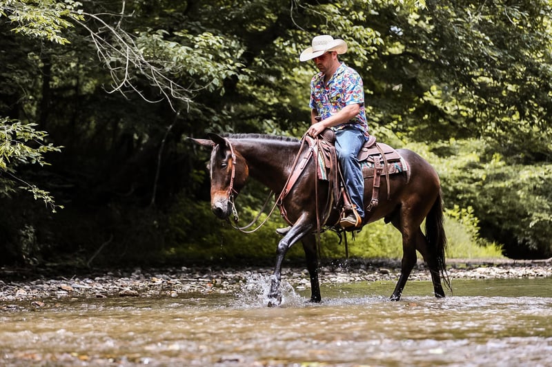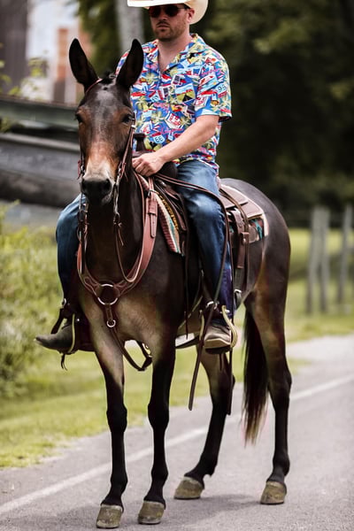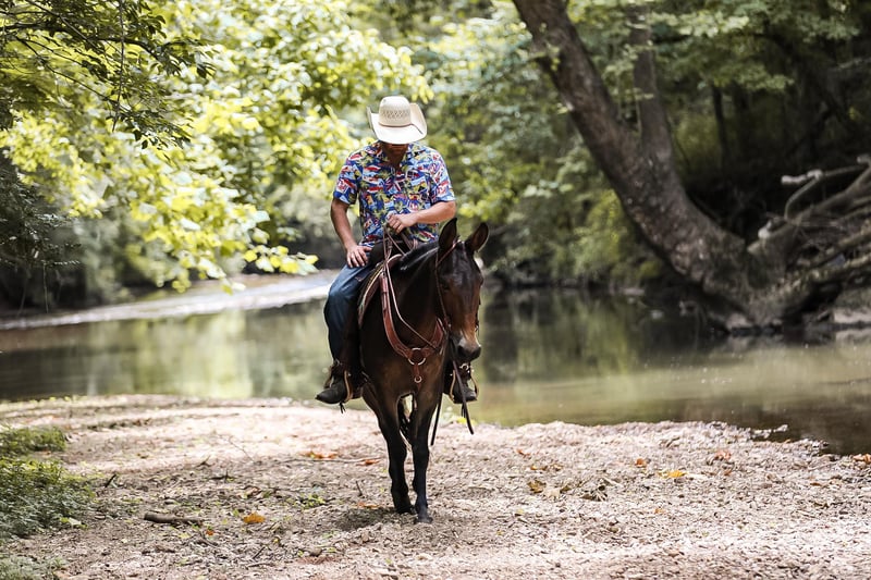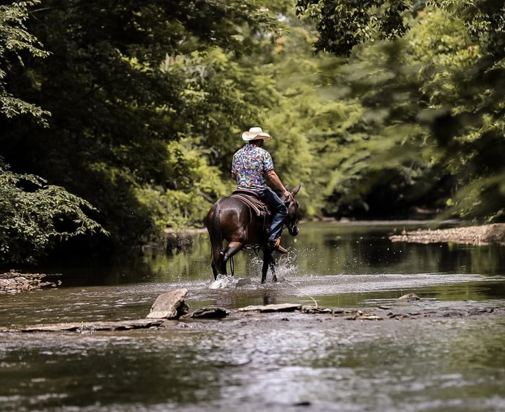 ONLINE AUCTION Place your bids at www.PlatinumEquineAuction.com Starting Bid $3500 Auction ends July 7th, 2024 Need a new saddle? Check out White Rock Saddles on our website or Facebook! If you are looking for one of the classiest and versatile mules around the look no further. Elvis is a 5yr old John mule standing right at 15hh tall. Elvis has been more places and seen more country in his short 5 years than most mules and people see in a life time. He is truly one hand broke, lays down on command, stands for the farrier and to be mounted and has the smoothest rocking chair lope. Elvis has been ridden in parade, trail ridden extensively, caught cattle in the arena and even hunted off of. He will side pass over to the gates to be opened, will go through the deepest creek, and climb the biggest hill. The best part about Elvis is he is safe for just about ANY LEVEL of rider. He will ride in the middle of a group or take lead and send the group through whatever you would like. Elvis is truly a one of a kind mule with his whole life ahead of him and the best part is HE IS GENTLE. For more info on Elvis call or txt Jesse Thomas 931-698-7159 Located in Santa Fe, TN. ONLINE AUCTION Place your bids at www.PlatinumEquineAuction.com Starting Bid $3500 Auction ends July 7th, 2024 Need a new saddle? Check out White Rock Saddles on our website or Facebook!