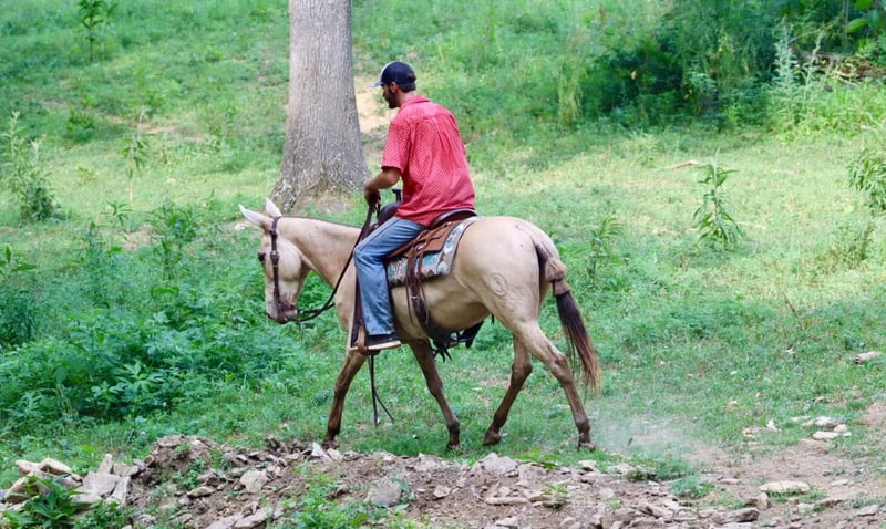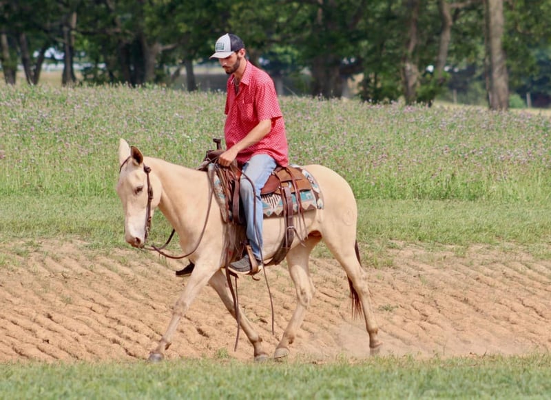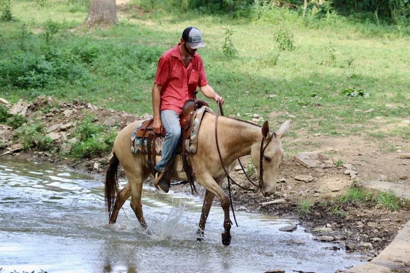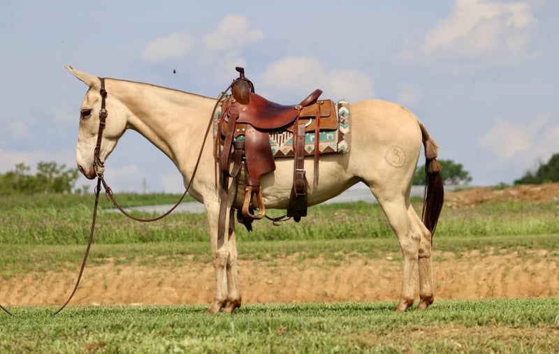 ONLINE AUCTION Place your bids at www.PlatinumEquineAuction.com Starting Bid $3500 Auction ends July 28th, 2024 Need a new saddle? Check out White Rock Saddles on our website or Facebook! My María is a stunning 6 year old, 14.2 hand ranch mule. Her eye catching champagne color and fun personality, makes her a joy to get on and ride everyday whether you are going on a relaxing trail ride, heading out for ranch work, or off to enjoy a fun show. María has been used in all aspects of ranch work. From roping and doctoring cattle, sorting pairs, to checking fence. She is comfortable around cattle and isn’t afraid of a hard day of work. She has spent a lot of time in west Texas and New Mexico, so seeing big country and some rough terrain is nothing new to her. If you’re looking to head out on a nice trail ride, she is game for that too. She will ride anywhere in the group, and will quietly ride away from her friends if asked. She also rides out alone confidently. María enjoys more difficult trails too. Point her nose up a steep bank and she will go, ask her to slide back down, she does it with ease. She walks over logs, goes through brush etc. She crosses water and doesn’t mind if it gets deep. María has also done extreme type trail obstacle such as swinging bridges, going up and down stacks of tires etc. María has a nice walk, jog, and lope. She neck reins, backs, and has a nice turn around. She rides nicely collected and has a beautiful lope on a full drape across the pasture field. You can open and close gates on her. She stands tied well and is quiet to tack up. She stands to mount and rides off nicely. María has been going to local fun shows this summer and handles that commotion nicely as well. She is traffic safe and has been ridden around farm equipment that is working. María is a super nice, all around mule that is super fun to ride. Don’t miss out on a great one! For more information, contact Sammi Waugh 704-798-5497 Located in Brooksville, KY. ONLINE AUCTION Place your bids at www.PlatinumEquineAuction.com Starting Bid $3500 Auction ends July 28th, 2024 Need a new saddle? Check out White Rock Saddles on our website or Facebook!