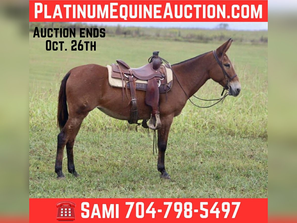 ONLINE AUCTION Place your bids at www.PlatinumEquineAuction.com Starting Bid $3500 Auction ends October 26th, 2025 Need a new saddle? Check out White Rock Saddles on our website or Facebook Hope is a 14.3 hand, 10 year old Molly mule. She is the mule you want to be riding when it comes time to gather cows, trail ride, or have a little fun in the area. She has 3 smooth gaits. Walk, jog, and lope. She has a slow jog on you can do a big ranch trot across the pasture if you want. She rides level headed and soft in the bridle. She rides one handed nicely. She is as sure footed as they come. It doesn’t matter how technical and rough the terrain is, she is going to get you through it safely. Hope will quietly and confidently walk into a set of cows whether it’s out in the pasture or in a catch pen. She has been roped off of. She is a trail riding machine and will take you anywhere you want to go. She is ready for fall trail riding or heading into hunting camp. She ties well either in the barn or on the high line. She is good with a group or rides out alone. Stands for clipping and the farrier. She is a friendly mule. She is the type of mule we are very proud to offer and know she will make someone an exceptional partner! For more information, please call/text Sammi with Waugh Livestock at 704-798-5497 Located in Brooksville, KY. ONLINE AUCTION Place your bids at www.PlatinumEquineAuction.com Starting Bid $3500 Auction ends October 26th, 2025 Need a new saddle? Check out White Rock Saddles on our website or Facebook