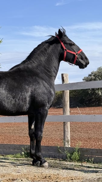 Honest and nice Murgese from family breeding Senega is currently about 164 cm tall at just 3.5 years old and is expected to grow a few more centimeters. He is not one of the heaviest Murgeses, has a good build, and possesses everything needed to continue working with him properly. He is currently still a stallion, but castration can be arranged on request. He has been lightly backed on-site without overburdening him at this age. Senega is typically relaxed for a Murgese and is hard to unsettle - which is one of the qualities we appreciate in Murgeses. Do you want to meet Senega in person? He is currently still in his home in Apulia. He also comes with X-ray images, which can be viewed upon serious interest. We also plan everything else for you - clinical purchase examination, handling of the purchase contract, transport to your home stable, etc. Cavallo Murgese.de - on behalf of and in collaboration with the Italian Murgese Association A.N.A.M.F.