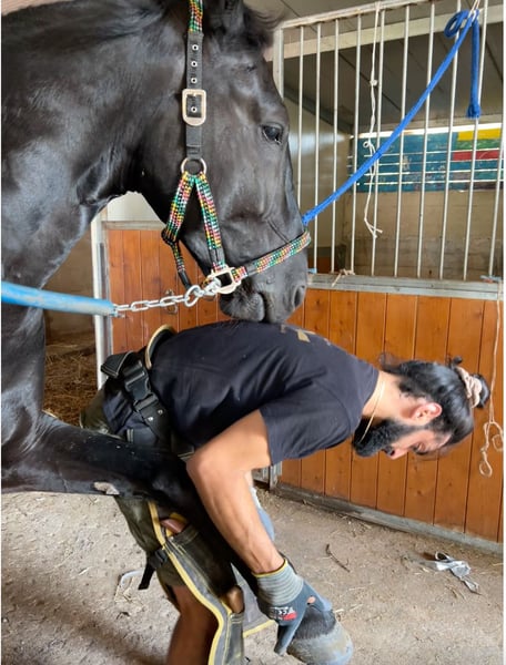 Met een zwaar hart ben ik op zoek naar een nieuw, permanent thuis voor mijn prachtige paard, Qabo. 5-jarige Murgese (februari 2020). Geboren, opgegroeid en momenteel gevestigd in Martina Franca, Puglia. Gefokt door de zeer gerespecteerde Masseria San Paolo. Gelding. Ongeveer 1,60 m. Naakt hoeven. Professioneel getraind op de grond en onder het zadel in alle drie de gangen. Elegant en soepel draf en galop, hij beweegt prachtig en zou een schitterend dressuurpaard kunnen zijn. Arena- en buitenrit getraind. Staat goed voor de hoefsmid. Laadt gemakkelijk in de trailer. Bekend met het bit en lungering. Rijdt met een rubberen 'mullen mouth' bit. Leeft 24/7 buiten op een grote paddock met schuilplaats en een vriend. Zijn nieuwe thuis moet ruime toegang tot buitenruimte bieden. In het verleden was hij overdag buiten en ’s nachts op stal, wat goed ging, maar permanente stalling is niet geschikt voor hem. Een intelligent en gevoelig paard dat gedijt bij een zelfverzekerde, ervaren ruiter en handler die structuur, routine en duidelijke begeleiding biedt. Vol persoonlijkheid, een echt karakter. Hij is bekend met het boerenleven en geluiden zoals tractoren, honden, katten, elektrische zagen, scooters, enzovoort. Ervaring met elektrische omheiningen. Gezond, regelmatig gevaccineerd, ontwormd en bezocht door de hoefsmid en tandarts. Röntgenfoto’s uit 2023 beschikbaar. Volledig gedocumenteerd. Hij moet naar een passend huis, het is geen dringende verkoop. Alleen serieuze geïnteresseerden met ervaring – niet geschikt voor beginners. Neem gerust contact op als u denkt een geschikt thuis te kunnen bieden voor Qabo.