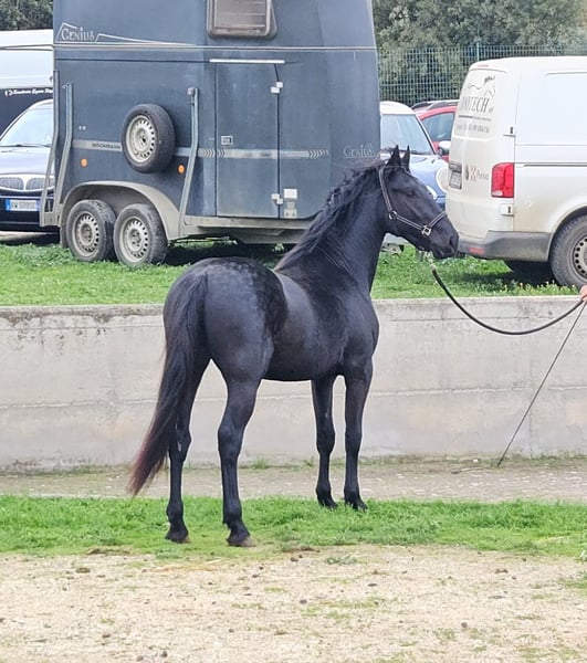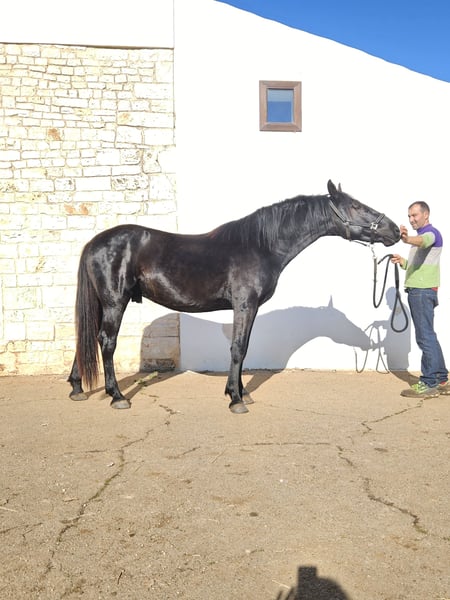 Tindaro was born on April 7, 2023, from Gemma, one of our most important broodmares with outstanding genetics. Gemma descends directly in female line from one of the first mares registered in the breed almost 100 years ago. His sire, Libero di Zappone, owned by the State, is an impressive horse with a baroque conformation, a gentle and friendly temperament, and he passes on smooth, pleasant gaits to his offspring. Tindaro was born into our herd, which comprises about 25 to 30 horses of varying ages, from a few months to over twenty years old. The herd includes mares of all ages, foals of both sexes, and a gelding. Like all our males, he remained in the herd until about 16 to 18 months old. At that point, he was separated and has been living in a large paddock consisting of woodland and pasture, together with other young males and our gelding, who plays an educational role with the young stallions. Currently, he is in the company of our gelding. He is familiar with electric fencing and the stable, which he spends a short time in each day to gradually and pleasantly get used to it. We prefer our horses to always live in large spaces, but we also understand how important it is for them to be adaptable and familiar with the stable, so they feel comfortable if, for any reason, they need to be housed there. Tindaro is not intrusive; he is curious about people but respects personal space, both his own and others’. We have known him since birth and have taught him, through only positive associations, that humans are a point of reference for him and that nothing bad or dangerous happens when people are around. He accepts grooming without issues, knows how to stand tied, and is currently working on picking up his feet, approaching the shower, and injections. We are also working with him on a confident understanding of the trailer, so he can travel calmly to his future owner and for all subsequent trips. We are teaching him, calmly and serenely, to move off at the three gaits, so he can eventually be lunged. Tindaro has smooth, expressive gaits with a natural extension. He is currently 157 cm tall but is expected to surpass 160 cm, as he has just turned two and will continue growing until around five years of age. A Future Together We are looking for a forever home for him, someone who sees the horse as a living being with its own personality and who wants to build a solid, lasting relationship. Someone who understands the fundamental needs of a horse, such as 24-hour access to hay and the opportunity to live in paddocks and in company. We work with positive reinforcement, but also use minimal, non-invasive pressure at the right timing. He has been dewormed and is undergoing his vaccination cycle. Currently, he is entire, but there is the possibility of gelding him here in Puglia, under our supervision at our farm. We are also happy to offer: - Additional videos upon request - Answers and information tailored to your needs - Organizing a veterinary purchase exam suited to your requirements - Hosting you at our farm to meet Tindaro in person - Arranging transport and the necessary documentation Visit our website: https://masseriacapoiazzo.it/ and our social media: Instagram: https://urly.it/3ajhc Facebook: https://urly.it/3ajhd Feel free to contact us for any questions, either here on ehorses or via WhatsApp at +39 346 523 2016. Paola and Giovanni