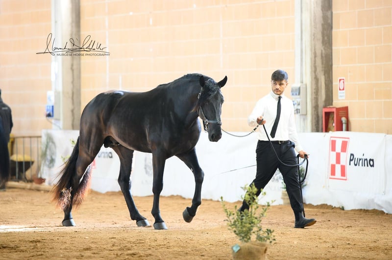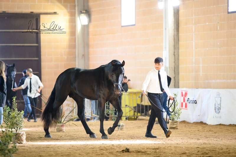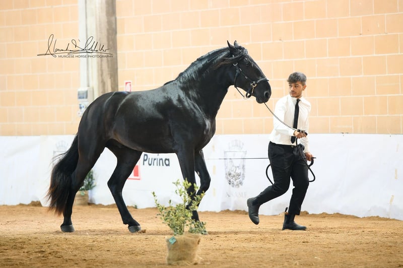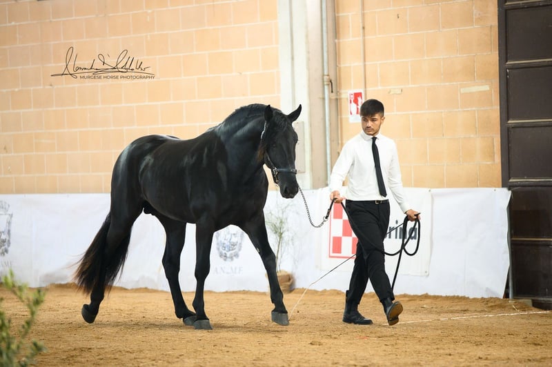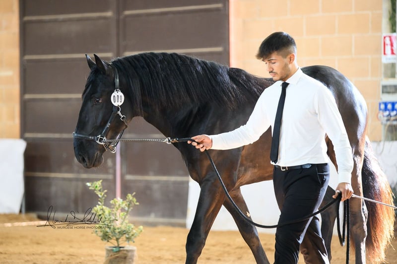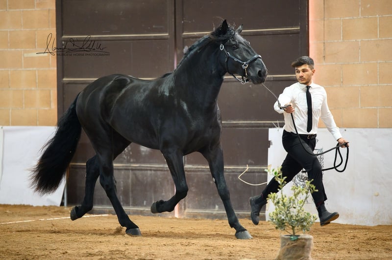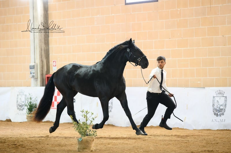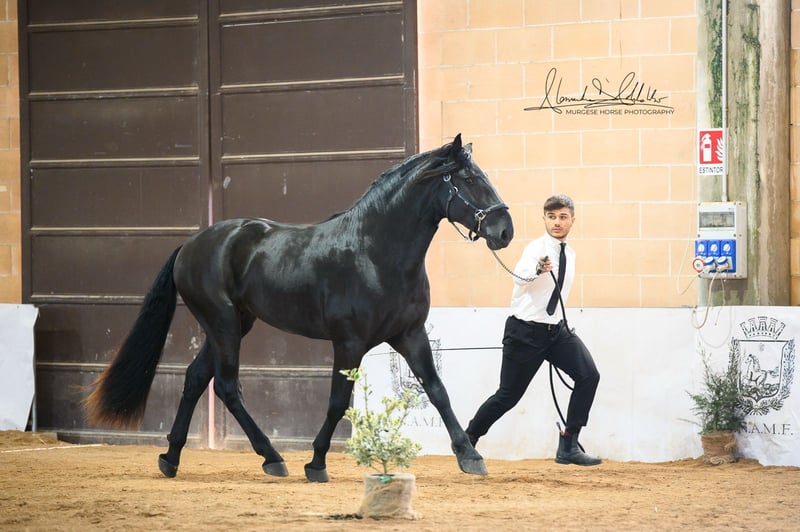 Toto incarne la lignée originelle de cette impressionnante race et possède tout ce que l'on peut attendre d'un véritable cheval baroque : une construction robuste, une apparence élégante et un regard honnête et clair. Nous estimons sa taille finale à plus de 165 cm – il est donc idéal pour les cavaliers qui apprécient la taille et la présence. Toto a grandi en troupeau, connaît l'ABC des poulains et se montre toujours amical, attentif et proche des humains. La castration est possible sur demande sur place. Des radiographies sont disponibles et, bien sûr, consultables en cas d'intérêt sérieux. Nous planifions également tout le reste pour vous – examen clinique d'achat, gestion du contrat de vente, transport vers votre écurie d'origine, etc. Cavallo Murgese.de – sous l'autorité et en collaboration avec l'association italienne des Murges A.N.A.M.F.