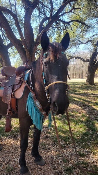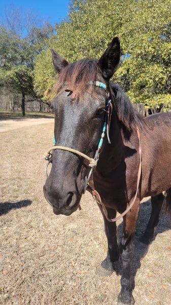 For Sale: American Mustang Gelding Discover the spirit of the wild with this stunning black Mustang gelding, born in 2011. Standing at 14 hands, he embodies strength and agility, making him an excellent choice for leisure riding. His natural temperament and versatility make him a great companion for riders with intermediate to advanced experiences. Whether you're looking for a reliable partner for trail rides or a fun, engaging horse to enjoy in your free time, this Mustang is ready to join you on your next ride! Don’t miss the opportunity to own a piece of American heritage—contact us today to learn more!