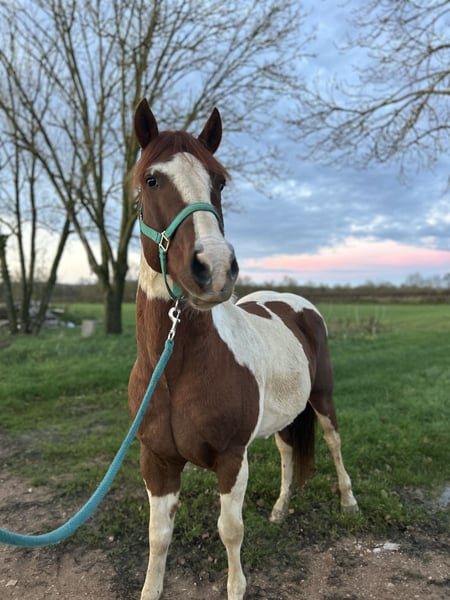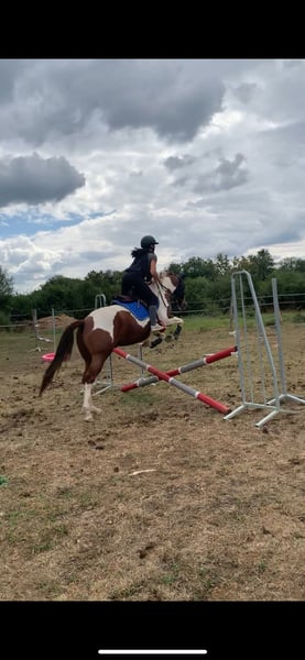 Jason, 6-year-old gelding (born 2019), 14.9 hh Chestnut pinto Front hoof injury Registered with the ONCP, but his sire is a Paint Horse and his dam is a Mustang (USA) Please read the ad carefully. Jason is a horse with a very particular temperament; he needs to develop a genuine trust-based relationship. He was broken in for rodeo work and still retains some of those memories, which he can occasionally show. He needs to be re-educated. He is still green in his training. Over fences, he jumps small obstacles and can string together 4-5 jumps at 60 cm. Under saddle, he can do short sessions and shoulder-in, but it’s not yet perfect. During rides, he remains gentle but can be sensitive in the arena, showing some resistance (bucking, tail swishing, tail raising) due to his rodeo background. Despite this, he remains friendly on the ground, and lunges very well. I am selling him because I lack the experience to handle a horse with a rodeo background. He lives outdoors year-round. He is familiar with the lawnmower, tractors, dogs, and the river. He loads very well into the trailer and travels smoothly. Up to date on farrier, dentist, osteopath, vaccinations, and deworming. I am looking for a five-star family, ideally with one or more pasture mates. A life entirely on pasture would be perfectly suited for him. I am seeking a person or professional, or someone with a very good level of riding, as he is a challenging horse and not suitable for beginners. For more information and pricing, please contact me via private message. Available in Saône-et-Loire (71).