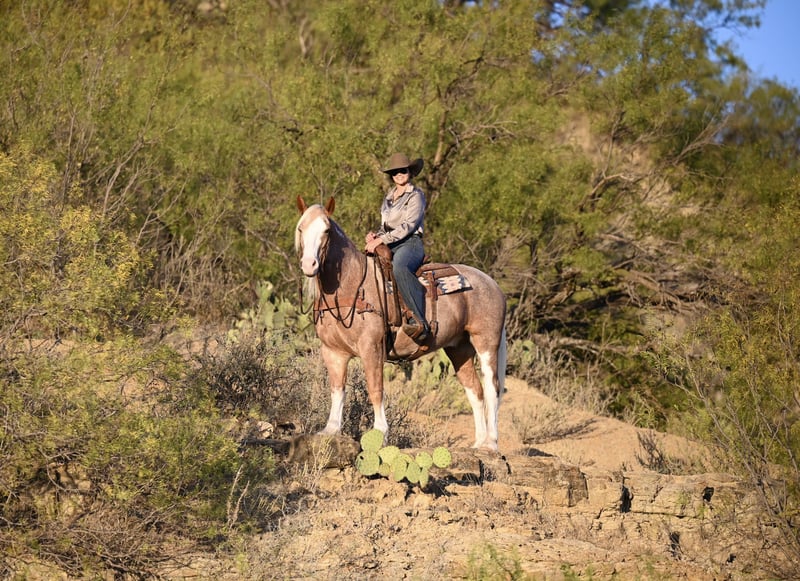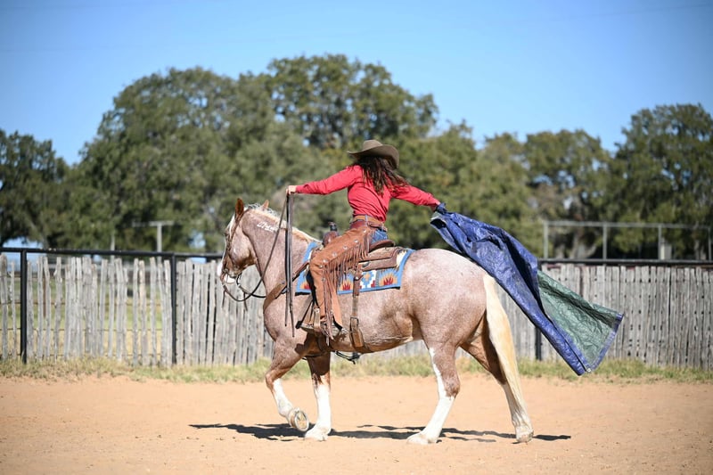⚜️ 𝓽𝓱𝓮 𝐇𝐨𝐫𝐬𝐞𝐦𝐚𝐧'𝐬 𝓢𝓱𝓸𝔀𝓬𝓪𝓼𝓮⚜️ Happening now thru MONDAY | DECEMBER 1st - Available EXCLUSIVELY on HorseBid's website! For more details and to register visit: www.Horsebid.com CONSIGNOR CONTACT: Jordan Brown 502-565-6621 LOCATION: Georgetown Texas BREED: Mustang REGISTERED: No COLOR: Red Roan HEIGHT: 14.3 AGE: 6 GENDER: Gelding Sam Elliot was dubbed his famous name because of his old school cool attitude and authentic western look. With golden locks of shoulder length mane and a forelock to his nostrils he is undoubtedly a lady’s man sure to steal the hearts of anyone who sees him! Unfazed by traffic, dogs, lights, and commotion he is a terrific mount for parades, shows, and paydays! He’s been there and done that with a resume full of long hard days working cattle on various ranches across the Texas panhandle. Trails are his specialty and you won’t find a more sure-footed and brave horse to take you over through and across any terrain you can muster! Has a gliding trot easy to sit or post and will lope right out of his tracks if asked. Elliot prefers a nice easy going pace and will ride anywhere in the group or boldly out alone. Neck reins or direct reins, has been hacked around in English tack as well with zero defiance. Side passes to open and close gates, backs off the trailer, loves a good warm bubble bath and cookies! Looking for his forever family!