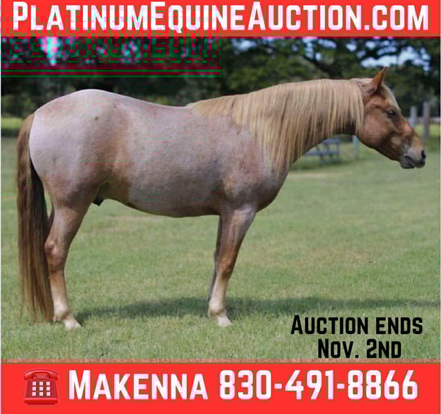 ONLINE AUCTION Place your bids at www.PlatinumEquineAuction.com Starting Bid $3500 Auction ends November 2nd, 2025 Need a new saddle? Check out White Rock Saddles on our website or Facebook Looking for a unique and fun-loving equine companion? Meet Reno, a beautiful, little strawberry roan gelding with a TON of personality, he’s a 7 year old Mustang with all his paperwork in hand! Reno stands 13.2 hands tall and boasts a gorgeous long mane and tail. Built like a tank, bigger pony sized. He’s gentle and kind, just wants to be your best friend. Great for the kiddos and the whole family! He steals the show with his looks and heart, everyone who meets him loves him. This boy is a big puppy dog with a “in your pocket” type personality. Reno beano loves to be the center of attention, loves to play in water, get a good bubble bath and all the spoiling he can get. Loves treats and scratches, once he gets to know you, you have a friend for life. Boy has been around the block, from the stockyards in Fort Worth to the deeps trails in the hill country. What makes Reno truly special? He’s a gaited Mustang, a rare find! He is truly a special boy; and does all the walking, trotting, the perfect smooth shuffle, and occasional loping that you ask of him. Western/ English versatile. Whether you’re hitting the trails, navigating your way through downtown, or enjoying the arena, Reno offers a fun, cozy, and reliable ride. Dog proof. Stands tied all day, picks up all his feet great and will load in and out of anything! Just happy to go! He’s sound and sane, with good strong bare feet. UTD on everything PPE welcome at buyer’s expense. Located in Stephenville, TX. Contact Makenna Cozby 830-491-8866. ONLINE AUCTION Place your bids at www.PlatinumEquineAuction.com Starting Bid $3500 Auction ends November 2nd, 2025 Need a new saddle? Check out White Rock Saddles on our website or Facebook