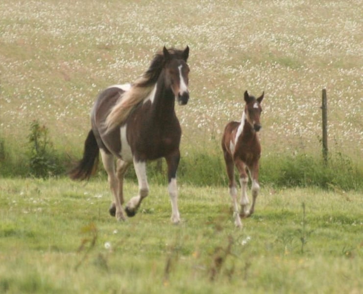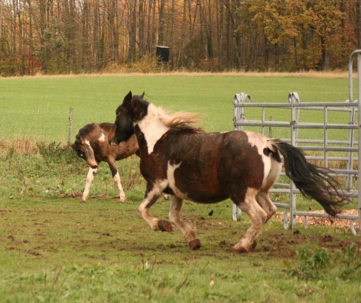 En raison d'acheteurs peu fiables. Disponible à nouveau. Mounty est née en 2013 dans les vastes étendues du Canada. Nous l'avons importée en 2014. C'est une mère exceptionnelle, qui fait tout toute seule. Tous les chevaux l'adorent, elle est facile à vivre dans le troupeau. Elle est toujours prête à jouer avec les poulains et les jeunes chevaux. Actuellement, elle est pleine de l'étalon Mustang doré ARI. Ces dernières années, ils ont donné naissance à des poulains de couleurs variées : Buckskin, Buckskin-Tobiano, Bai-Tobiano, Palomino, etc. Ses poulains mesurent tous plus de 150 cm. Elle n'a jamais été montée jusqu'à aujourd'hui. Non usée et facile à vivre. Pleine pour fin mai, mi-fin mai. Elle pourrait encore déménager. Plus de photos et vidéos disponibles sur WhatsApp au 0179 5221143. Nous avons également d'autres juments à vendre, ainsi qu'Ari, notre étalon doré. Vous pouvez constituer votre propre petit troupeau de Mustangs, car ils se connaissent tous entre eux.