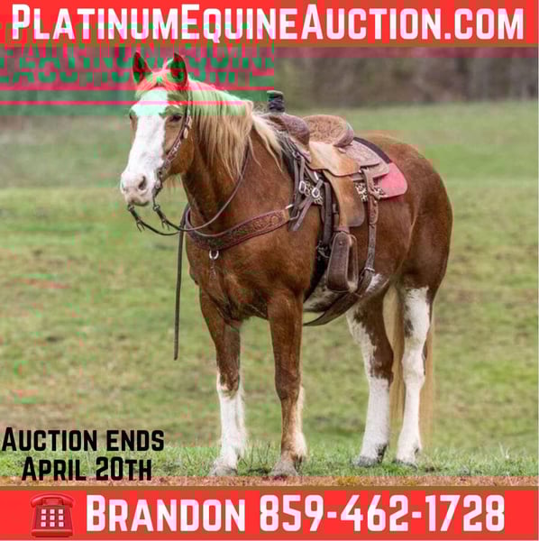 ONLINE AUCTION Place your bids at www.PlatinumEquineAuction.com Starting Bid $3500 Auction ends April 20th, 2025 Need a new saddle? Check out White Rock Saddles on our website or Facebook! Journey is a 15.1 hand 14 year old Mustang mare, yes you read that right, but don’t fret because she will be more tame and kinder than your house cat ! Journey has spent her lifetime being a sophisticated citizen, from being a beloved trail horse, to being a full time payed employee at an English lesson barn, and even dabbling in some 4H shows ! She’s a women of many jobs, if you want the opportunity to say “I own a Mustang” and I don’t mean a GT500, than Journey is your gal! Don’t ever worry about carrying a bucket of grain or a laso, because if you whistle or she sees you, Journey will be the first to greet you ! Keep her outside or indoors, in a stall she’s quiet, and even poops in one corner ! She stands tied, or in cross ties, stands to be saddled, brushed, clipped, or whatever your heart desires ! She’s great for the farrier and has the true American made mustang hoofs, she’s barefoot and can stay barefoot, or she will pack a set of shoes no problem ! Tack her up English or western, she is trained in both disciplines. She will walk trot and lope with ease, she catches her leads and has a very appealing jog, with a rocking chair Lope. she’s got a good whoa and back, and can ride on a loose rein. Journey is stout made and is solid enough for any size rider. She has been used In lessons and stays calm and kind with beginners or put an experienced rider on her and ask her to be fancy ! She has been started over cross rails and would also make a nice beginner lower level jump mount ! Journey rides bridless, and even has had a junior trick rider on her and let her perform without any hesitation. Trail riding ? Trick riding? Obstacle courses ? Lower level jumping ? 4H shows ? Why buy a horse for each discipline when you can buy journey and do it all for the price of one ! Journey is good for the vet, she loads with ease, good for baths, and is truly just an easy mare. She stays broke with time off, absolutely no buck or foolishness, she’s a seasoned pro, ride her once a year or once a day she will always be the same good honest gal! Journey has no vices, and we encourage any potential buyers to come try her, your guaranteed to love her as much as we do ! Journey comes with multiple references that would be glad to share their contact info to give you their experience of riding and being around Journey. Located in Wallingford, KY. Contact Brandon Browning 859-462-1728 with any questions. ONLINE AUCTION Place your bids at www.PlatinumEquineAuction.com Starting Bid $3500 Auction ends April 20th, 2025 Need a new saddle? Check out White Rock Saddles on our website or Facebook!
