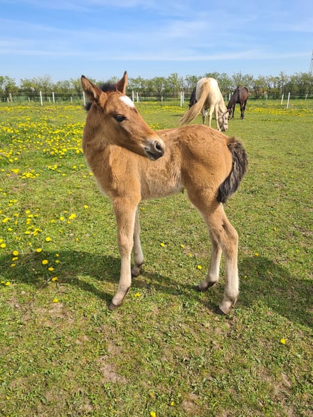 Leia is een vriendelijke kleine merrie die nabijheid zoekt tot de mens. Ze krijgt volledige papieren en fokkeuring en veulen abc. Leia wordt getest op genetische ziekten en haar kleur. We kijken ernaar uit om van je te horen en je te leren kennen!