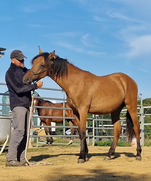 Aristeo est né le 28 avril 2024. À son âge, il est déjà très grand. Nous l'appelons TEO, il est amical dans ses interactions et travaille en fonction de son âge. Il grandit avec d'autres étalons. Son jeu quotidien favorise le développement de ses muscles, de son endurance, de ses poumons et de son équilibre. Son comportement social, si important, est également en cours d'apprentissage. TEO possède un papier rouge et pourrait éventuellement devenir étalon de reproduction. Il peut volontiers rester chez nous pour continuer sa croissance.