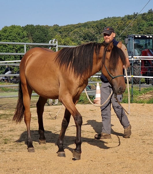 Aristeo è nato il 28 aprile 2024. Per la sua età, è già molto grande. TEO, così lo chiamiamo, è amichevole nel rapporto con le persone e lavora in modo adeguato alla sua età. Cresce insieme ad altri stalloni. Il gioco quotidiano aiuta a sviluppare muscoli, resistenza, capacità polmonare e equilibrio. Inoltre, viene allenato anche il fondamentale comportamento sociale. TEO ha un certificato di proprietà rosso e potrebbe diventare un stallone da monta in futuro. Volentieri può rimanere con noi anche per l'allevamento e la crescita successiva.