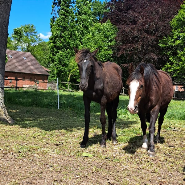 **Annuncio di vendita: Stallone Mustang** In vendita c'è un bellissimo stallone Mustang Cruzado Iberico americano, nato nel 2024. Con un'altezza stimata di 158 cm e il suo impressionante colore nero, è davvero un colpo d'occhio. Ha documenti completi dal Consorzio di Allevamento Bavarese per razze speciali. Questo stallone è perfetto per l'equitazione western, per cavalieri di tempo libero più esigenti e anche per la Working Equitation. Grazie al suo 50% di sangue purosangue, ha anche potenziale per il dressage e le gare di endurance. Il suo carattere amichevole e riservato (osserva molto attentamente e poi si avvicina con fiducia) lo rende un partner ideale per chi ama lavorare con un cavallo versatile e intelligente. È nato da me ed è stato ben socializzato, crescendo nei primi 7 mesi nel gruppo delle fattrici. Dopo, l'ho svezzato e integrato nel mio gruppo di stalloni insieme a suo fratellastro. Attualmente vive in questo gruppo di stalloni in un paddock aperto. Ha ereditato dal padre Sunny il carattere dolce, le articolazioni forti e la bellezza da entrambi i genitori :-) A causa della sua dolcezza, sarebbe adatto anche come stallone da monta. Nel video sopra si vede suo padre Sunny nella monta californiana tradizionale. Sua madre Pearl proviene da genitori famosi che hanno ottenuto buoni premi nelle corse piane. Per ulteriori informazioni o domande, sono a vostra disposizione. Le visite sono possibili su appuntamento.