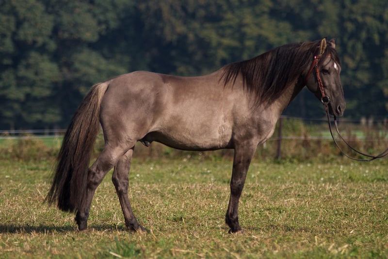 **For Sale: Mustang Stallion** For sale is a beautiful American Cruzado Iberico Mustang stallion, born in 2024. With an estimated final height of 158 cm and his impressive black coat, he is truly a sight to behold. He has full papers from the Bavarian Breeding Association for Special Breeds. This stallion is well-suited for Western riding, the more demanding leisure rider, and also for Working Equitation. With a 50% Thoroughbred percentage, he also has potential for endurance and dressage. His friendly and reserved nature (he observes very closely and then approaches trustfully) makes him an ideal partner for those who enjoy working with a versatile and intelligent horse. He was born with me and has been well-socialized, growing up in a mare herd for the first 7 months. After that, I weaned him and integrated him into my gelding herd along with his half-brother. He currently lives in this gelding group in an open stable. From his father Sunny, he inherited a gentle character, strong joints, and from both parents, he has beauty :-) Due to his gentleness, he would also be well-suited as a breeding stallion. In the video above, his father Sunny is shown in the Californian riding style. His mother Pearl comes from famous parents who have earned good prizes in flat racing. If you are interested or have further questions, please feel free to contact me. Viewings are possible by appointment.