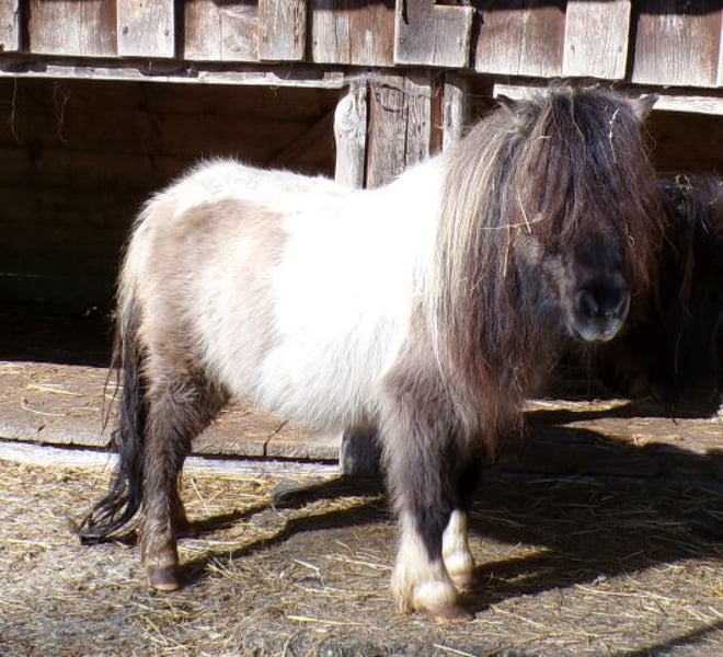 Il mini Shetty è uno dei pony Shetland. Si differenzia dai suoi cugini più grandi essenzialmente soltanto nell'altezza, il cui importo è non più di 87 cm. Il corpo è compatto, le zampe brevi e la testa piccola e preziosa. A causa della loro mente e forte statura, i piccoli pony Shetland sono isole d ...più