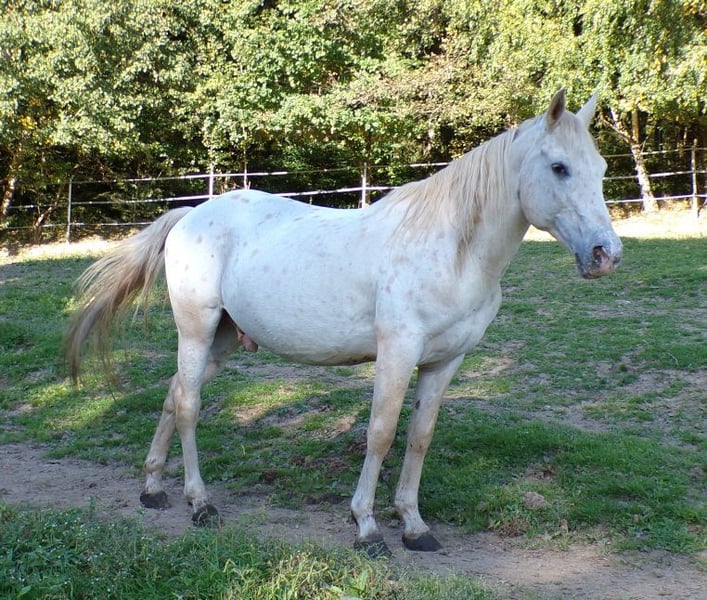 Our Jimmy is a sensitive and gentle gelding, easy to handle even by children, and he is safe without electric fencing. He has an incredible amount of tölt, although he hasn't been ridden for the past eight years. When he is stressed, he tends to weave, but since he lives in a herd in an open stable with us, we have not observed this behavior. Additionally, he has a crack in the horn of his front right hoof, but it has not caused any issues so far.