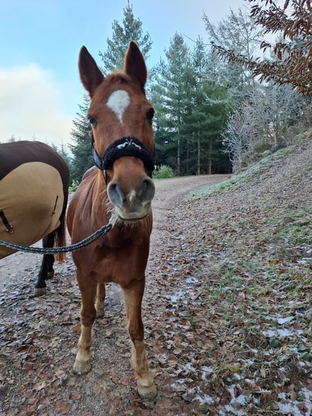 A 14-year-old New Forest Pony seeking a loving home as a trail or recreational riding pony. Stanley loves the outdoors and is a brave, well-behaved, and motivated pony when riding in the terrain. Due to a cervical spine issue, traditional dressage or jumping are not possible. However, Stanley enjoys groundwork, classical lunging, long-reining, and double-longeing. He stands at 147 cm (approximately 14.1 hh) and has a good temperament, making him suitable for experienced adult riders who can sit independently without relying solely on the reins. He is not a beginner or children's pony and requires a rider with riding experience. Currently, he is kept in a gelding paddock with other horses, where he tends to be middle-ranking; he has always shown good compatibility with his herd. Stanley is also completely uncomplicated when it comes to the farrier and loading. Further information gladly provided in person. Video available upon request. Equipment can be included. Priority for the right home over price.
