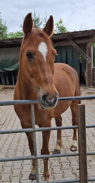 14jähriges New forest Pony sucht liebesvolles zu Hause als Gelände- oder Wanderreitpferd. Stanley liebt das Gelände und ist ein unerschrockenes Pony, das brav und motiviert ins Gelände geht. Aufgrund eines HWS Befundes ist kein klassisches Dressur- oder Springreiten möglich. Stanley mag allerdings auch Bdenarbeit, klassische Handarbeit, Longe und Doppellonge. Er ist 147 cm groß und deckt gut ab, so dass er problemlos von Erwachsenen gritten werden kann. Er ist kein Anfänger- oder Kinderpony, sondern benötigt einen erfahrenen Reiter, der zügelunabhängig sitzen kann. Aktuell steht er in einem Wallach Offenstall, wo er eher im mittleren Rang steht, bisher hat er sich immer gut verträglich gezeigt mit anderen Pferden. Stanley ist auch völlig unproblematisch beim Schmied und beim Verladen. Weitere Infos gerne persönlich. Video auf Anfrage. Zubehör kann übernommen werden. Platz vor Preis.