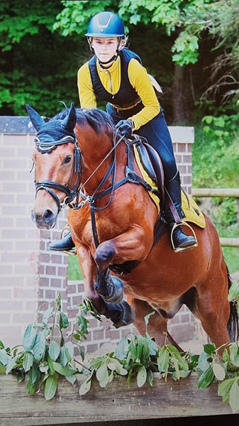 Cherchez-vous un poney honnête, doux et fiable, qui excelle dans tous les domaines ? Un compagnon de confiance qui fait tout pour vous dès qu’un lien de confiance s’est établi ? Tico est un poney tout-terrain calme et fiable, né en 2007, appartenant à la race New Forest. Il part pour cause de passage à un cheval. Mesuré à 147 cm à son jeune âge, il est enregistré comme D-pony dans son passeport, mais il a aujourd’hui une hauteur au garrot de 150 cm, ce qui le classe en E-pony. Actuellement, Tico évolue en dressage niveau L1, mais il en a le potentiel : il a été entraîné par, entre autres, Seth Boschman, qui a montré qu’il pouvait également faire les exercices de niveau L2. Notre fille s’intéresse davantage au saut d’obstacles et à l’endurance : il a obtenu des points en sautant 80 cm, et lors des entraînements, il saute régulièrement plus d’un mètre. Il possède une expérience en compétition de dressage, cross et saut d’obstacles, et conserve un bon potentiel pour les années à venir. Notre fille travaille actuellement à lui apprendre le changement de pied au galop, qu’il exécute souvent de lui-même. Il apprend vite, surtout si l’on travaille avec douceur et honnêteté. En dressage, il est très soigné : il a remporté plusieurs premières et deuxièmes places en classe B, ainsi qu’en L1. Il adore faire des sorties en extérieur, que ce soit seul ou en groupe, ce qu’il apprécie énormément ! Il fait tout pour vous : traverser l’eau, sauter des troncs, monter des petits escaliers, etc. Lorsqu’on l’a eu, il n’aimait pas beaucoup la remorque, mais aujourd’hui, il y monte sans problème. Tico n’a pas de défauts en box, il s’entend bien avec les autres chevaux et aime être brossé et câliné. Il n’aime pas rester seul, il doit donc aller dans une maison où il aura un compagnon de paddock. Lors des sorties, entraînements ou transports en van, il ne pose pas de problème. En été, il porte un couvre-rein et un masque anti-mouches, car il souffre d’une légère forme d’eczéma estival. Grâce à une alimentation adaptée, nous avons réussi à contrôler ses symptômes. Il passe toute la journée au pâturage. Tico est vacciné et vermifugé chaque année, et bénéficie régulièrement de soins dentaires et de maréchage. Il est en parfaite santé, sans particularités médicales, et n’est pas ferré. Suite à une entorse survenue au printemps dernier, une radiographie et une échographie ont été réalisées, montrant que tout était en ordre, tant au niveau de sa santé générale que de son postérieur droit. En cas de souhait, une inspection clinique et des radiographies complémentaires seront à la charge de l’acheteur. Tico sera uniquement confié à un foyer sérieux, 5 étoiles, sans intérêt pour les marchands ou manèges. Il sera vendu avec sa selle de saut et de dressage, deux mors, un couvre-rein, etc. De nombreuses photos et vidéos sont disponibles pour les acheteurs sérieux. Le prix est négociable pour le bon foyer.
