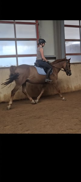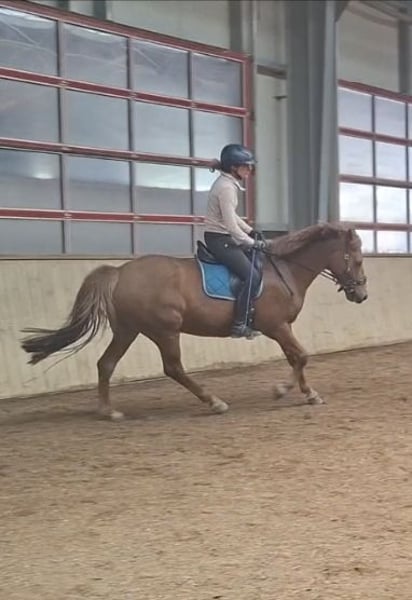 For personal reasons, we are looking for a new home for our Endurance Pony Gelding. Gamble is a 1.51 m tall, chestnut-colored New Forest Pony with a Dutch passport, born in June 2010. He is currently in full training and is being worked in a versatile manner. He has attractive basic gaits and is at dressage level A. With appropriate riding skills, turns on the forehand and lateral movements are no problem, and he can also perform flying changes. He particularly enjoys pole work and gymnastics exercises. He easily jumps small courses and also helps his rider when approaching obstacles slightly off-route. He loves long rides and walks and is a motivated and calm partner in the terrain, even alone. During ground work, he is attentive and learns quickly. Equikinetic and Tensegrity training are also part of our daily routine and are well received. He has always been well-behaved with the veterinarian and farrier. Currently, he is barefoot, but he has also been shod with regular shoes before. At the moment, he lives in a paddock box with turnout/pasture during the day. He has also lived in an open stable and adapts well to both housing systems. Ideally, he should be kept with geldings as paddock or pasture companions, as he tends to get along too well with mares. For an ambitious leisure rider, Gamble is a wonderful partner, but he needs clear leadership and is therefore not suitable as a beginner pony or for riding schools. A recently fitted jumping and dressage saddle, along with all other tack, can be included for an appropriate additional fee, so the new owner can start riding immediately. I am happy to answer friendly inquiries with a brief description of your situation (housing, riding experience, etc.). We are looking for a nice, suitable home for our pony. The price is negotiable.