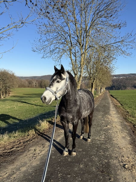 Zum Verkauf steht unser New Forest Pony Teddy, ein 2020 (April) geborener Schimmelwallach mit einem eingesessenen Stockmaß von 1,48 m. Er überzeugt vor allem durch seinen angenehmen Charakter und seine Vielseitigkeit. Teddy stammt von Hamlet’s Magnum XL ab, Muttervater ist Priory Prickle. Unter dem Sattel zeigt sich Teddy stets motiviert und zuverlässig. Aktuell wird er dressurmäßig auf E-Niveau gearbeitet. Teddy ist sehr menschenbezogen, freundlich und neugierig. Er geht brav mit, ist kinderlieb und macht im täglichen Umgang keinerlei Probleme. Auch neue Situationen meistert er ruhig und gelassen. Im Stallalltag ist er unkompliziert, schmiede- und verladefromm und insgesamt ein sehr liebevolles Pony. Ein guter TÜV (Mai 2025) inklusive Röntgenbildern liegt vor. Ein Pony, das sich sowohl für Freizeit als auch für eine weiterführende Ausbildung sehr gut eignet.
