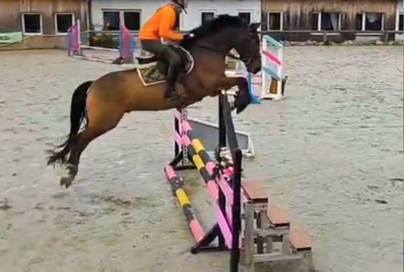 On behalf of acquaintances, for sale. Stylish 8-year-old gelding with competition experience in dressage and show jumping. The pony is well-trained but not suitable for beginners. He is sold exclusively for high-level leisure riding, as his nerves are not strong enough for competitive sport.!!! With an approximate height of 15.1 hh, he fits very well. He also jumps complete courses. He is highly recommended for advanced recreational riding. Please no inquiries from competitive riders! Contact via phone or WhatsApp at 01735858104.