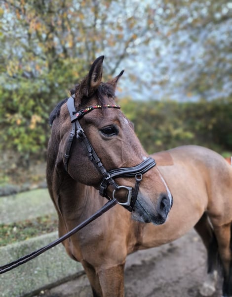 On behalf of acquaintances, for sale. Stylish 8-year-old gelding with competition experience in dressage and show jumping. The pony is well-trained but not suitable for beginners. He is sold exclusively for high-level leisure riding, as his nerves are not strong enough for competitive sport.!!! With an approximate height of 15.1 hh, he fits very well. He also jumps complete courses. He is highly recommended for advanced recreational riding. Please no inquiries from competitive riders! Contact via phone or WhatsApp at 01735858104.